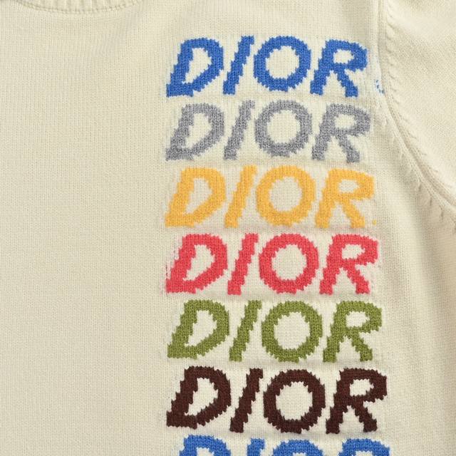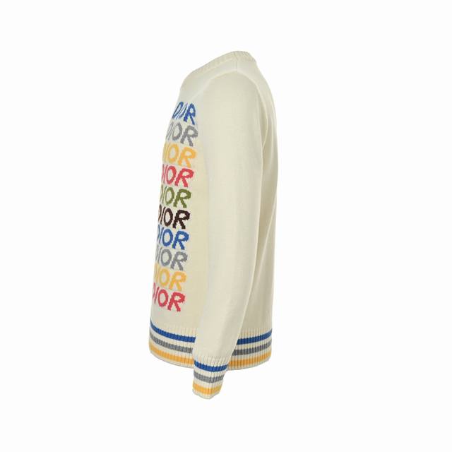 Dior 25Fw Multicolor Logo Jacquard Striped Crew Neck Sweater Ddd Color: Apricot Ddd Size: SL DDD