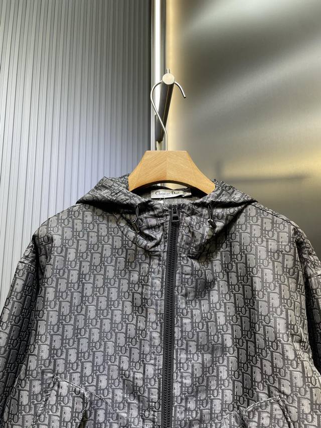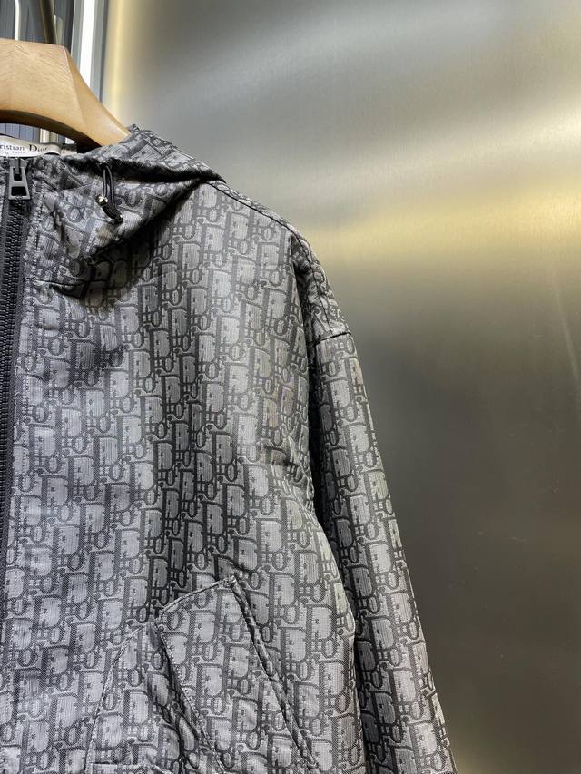 25Ss Early Spring New Monogram Jacket Original Design! High-Quality Replica! This hooded jacket features gold Oblique jacquard, a classic pattern reminiscent of D*Or's 1967 release. Made with custom gold taffeta technical jacquard fabric, and adorned with a small bee embroidery on the right pocket for added refinement, this jacket is incredibly detailed and meticulously crafted. Most importantly, the matching floral pattern is a key element, resulting in double the production cost of a regular jacket