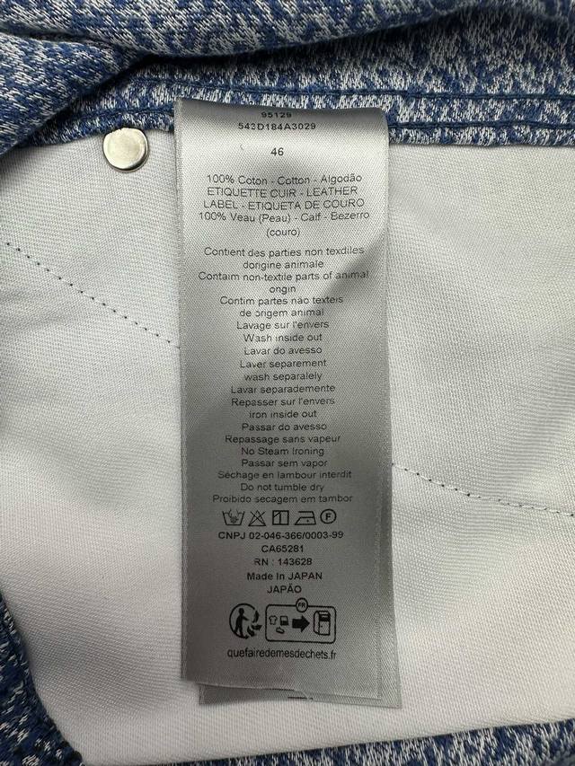 Dior 25Ss New Cargo Jeans, Blue Cotton Jacquard Fabric, Christian Dior Paris Tag. These cargo jeans are a new addition to the 2025 Winter Men's Collection, reinterpreting the workwear style with a casual fit. Crafted from blue cotton jacquard fabric with a gradient pattern, they feature a five-pocket design and a Christian Dior Paris leather tag at the back, inspired by the spirit of Dior Haute Couture, paying homage to the exceptional craftsmanship of the Dior ateliers. Pair with a matching jacket for a sophisticated look. Sizes: 46, 48, 50, 52.