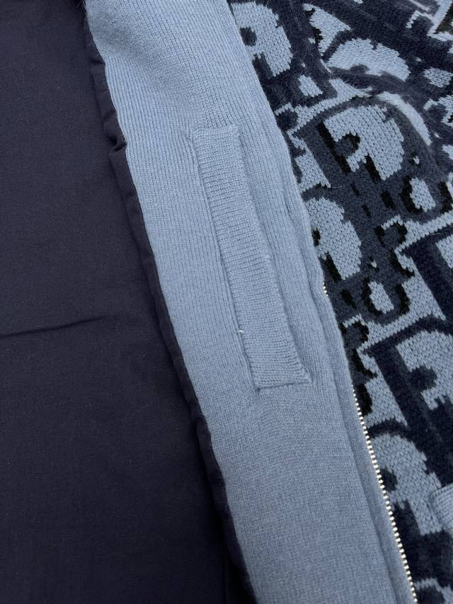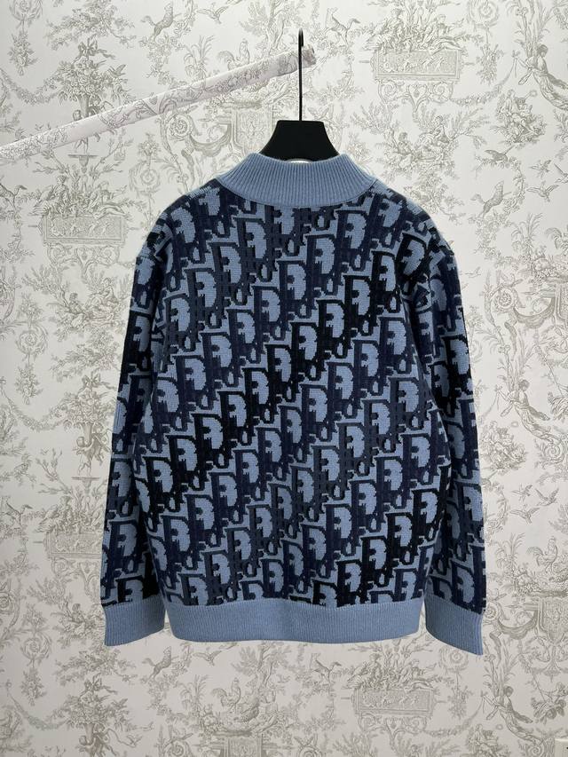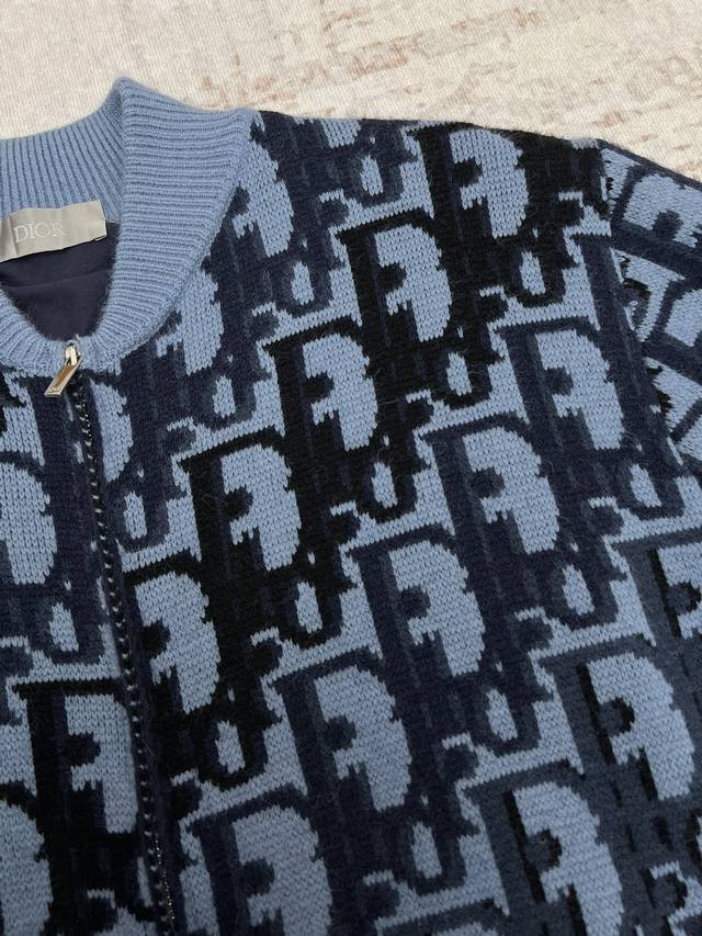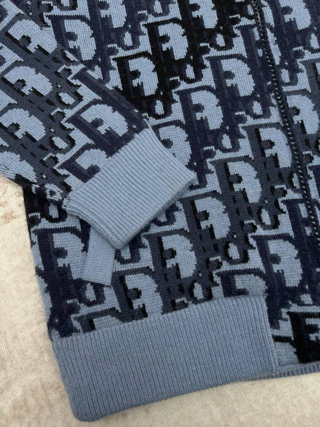 Dior 25Ss New Short Jacket in Grey Wool Knit with Oblique Print. This short jacket highlights Dior's classic Oblique print. Crafted from grey wool knit, it features a multi-colored Oblique print throughout, accented with patch pockets, ribbed collar, cuffs, and hem for a distinctive look. The all-over pattern exudes Dior elegance and adds a touch of tonal graphic detail to any outfit. Sizes: Xs, S, M, L