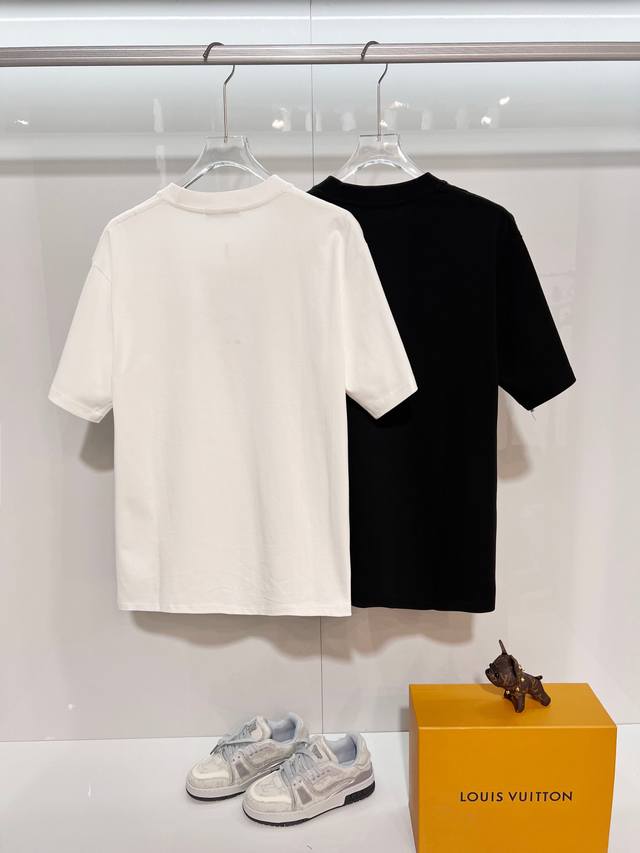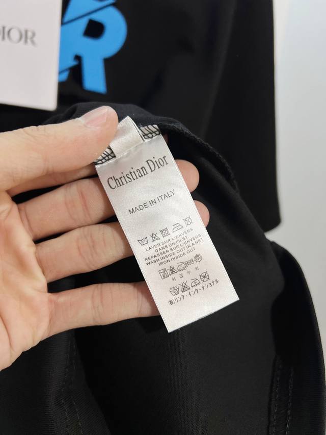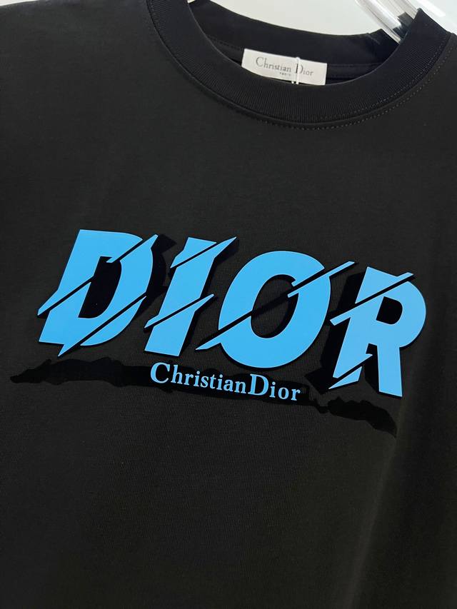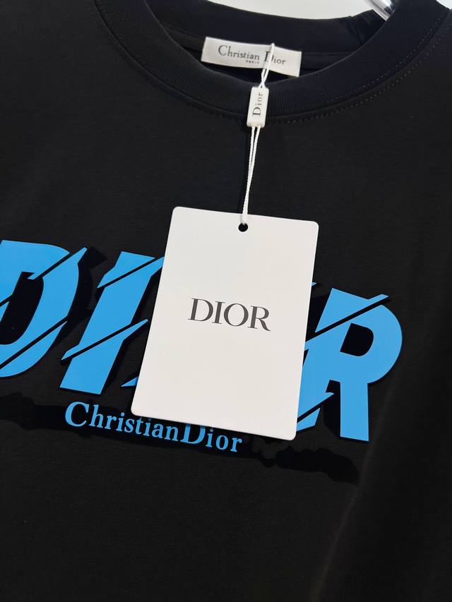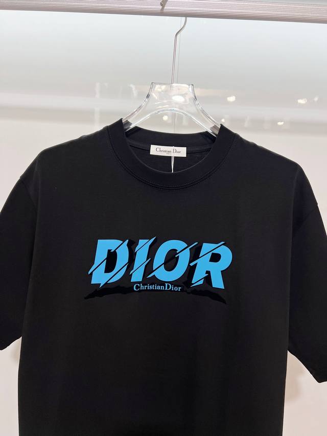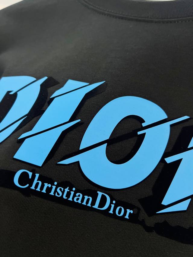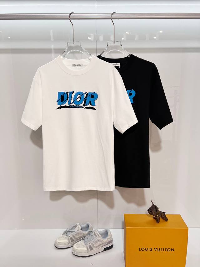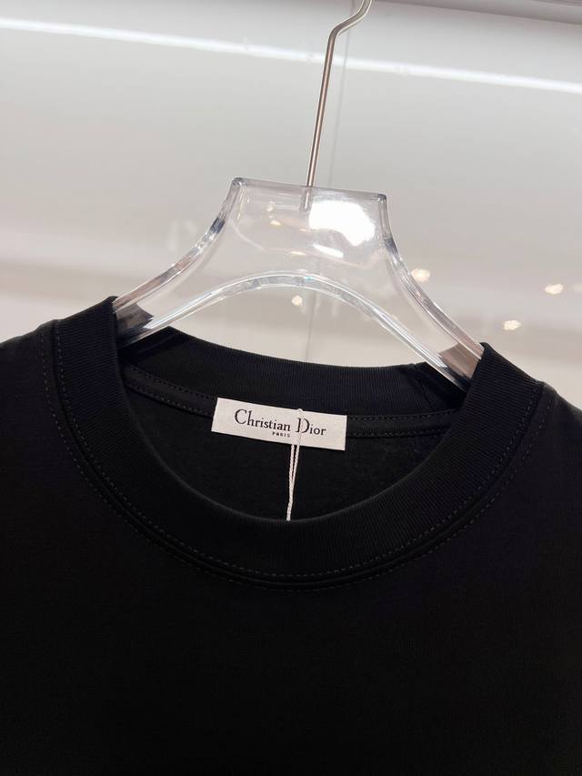 Dior 300g Crew Neck Short Sleeve T-Shirt, featuring classic double-layer fleece lining with embossed logo and lettering. Officially synchronized with 2025 SS, high-quality and fashionable. Made with original fabric and tags. Colors: Black, White. Sizes: S, M, L, XL.