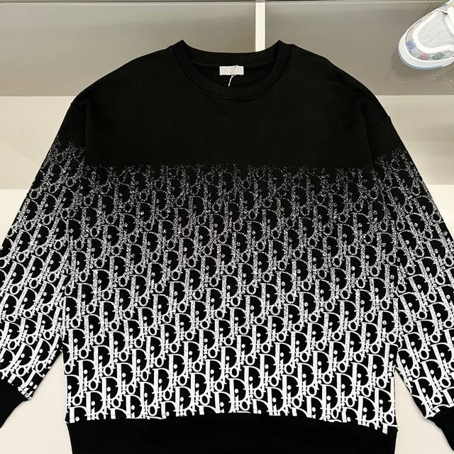 Dior 420g 100% Cotton Crew Neck Sweatshirt Dior monogram gradient brand letter half-body logo print Official high-quality version Fashionable, versatile and trendy Pure original quality fabric Complete with hangtag, neck label, and wash label Colors: Black, Apricot Sizes: XS-L