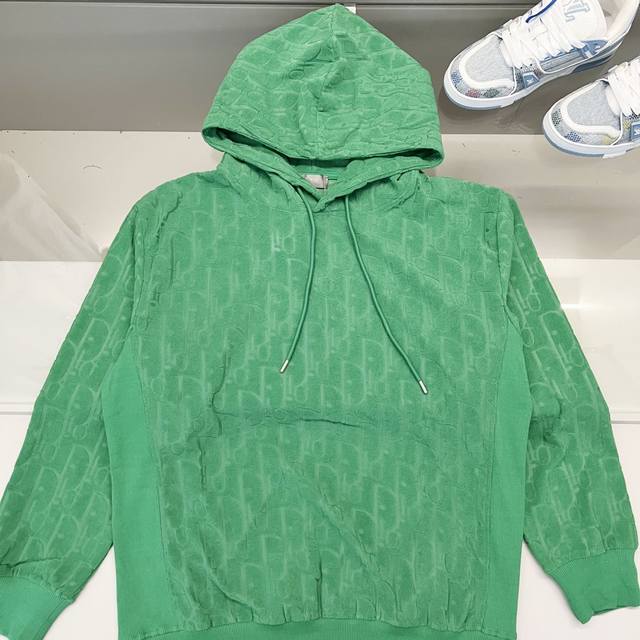 Dior 420g Custom Jacquard Fabric Hooded Sweatshirt, Classic Style, Monogram Pattern, Subtle Logo, Jacquard Label, Official High-Quality Version, Stylish, Versatile, Trendy, Pure Original Quality Fabric, Complete with Hangtag, Neck Label, Washing Label, and Three Tags, Colors: Black, White, Royal Blue, Green, Light Blue, Brown. Sizes: XS-L.