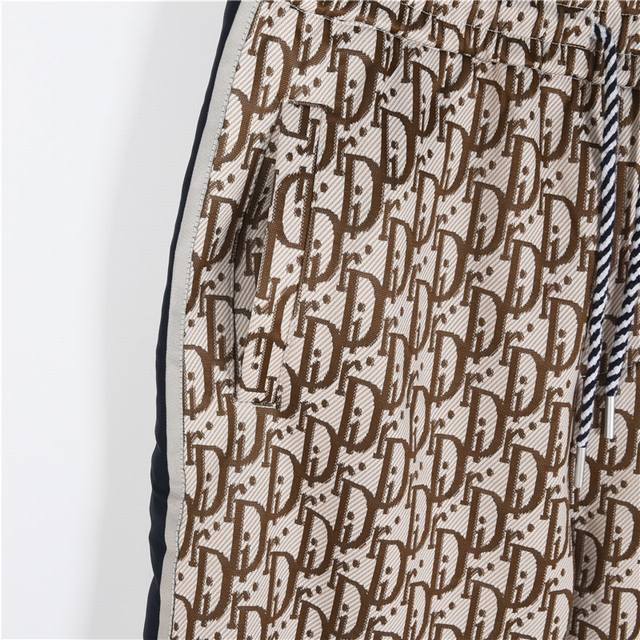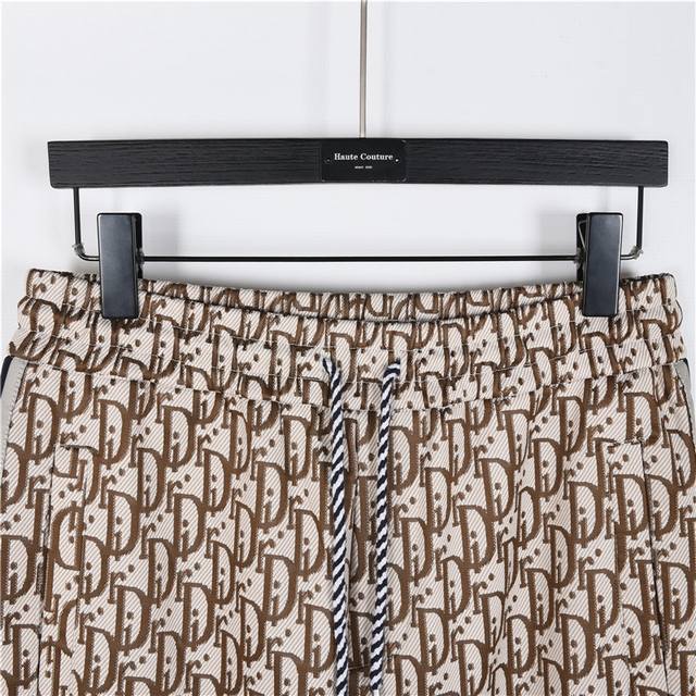 Dior All-over Jacquard Side-Welt Pants Suit, Beige. Inspired by 1980s retro style, this custom-made 480g jacquard fabric has a substantial feel and clear lining, giving it a weighty look. The overall design is minimalist, developed from the original pattern. The fully bound lining and trim are exquisitely crafted, perfectly replicating the defined waistline. The double-needle machine is modified for quilting. While seemingly simple, it boasts numerous small details, making it easy for both men and women to wear. Can be paired with a jacket. Colors: Black, Beige, Beige. Size: S-XL.
