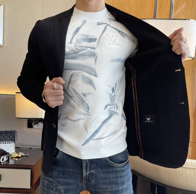 Dior Autumn's hottest casual knit suit jacket. The most fashionable and simple design, elegant and sophisticated, exuding refinement in a relaxed style. Fabric: This custom-made polyester fiber fabric is not traditional, giving it a more youthful and fashionable look. The details are very meticulous. The fit is classic, but the cut is very special. It's neither too loose nor too fitted, but rather a perfect fit, flattering for all body types. Sizes: 48-56.