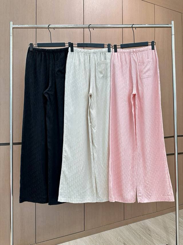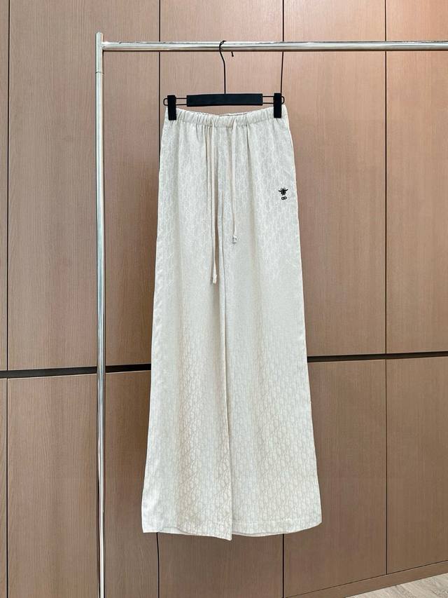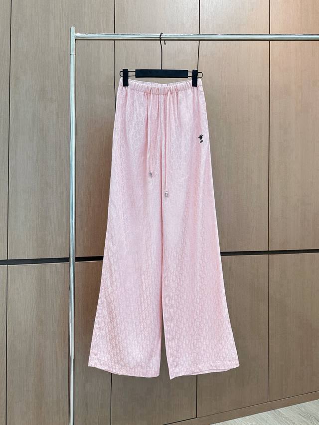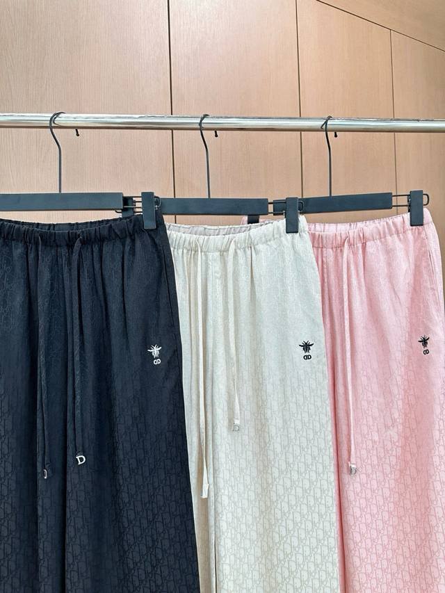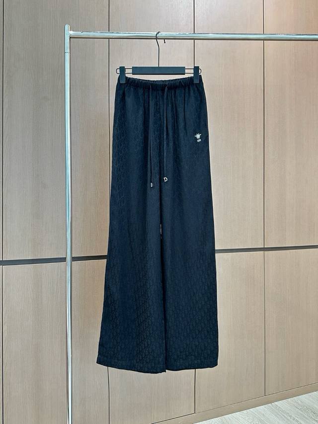 Dior Cd bee embroidery drawstring elastic waist dark pattern jacquard old flower casual pants
