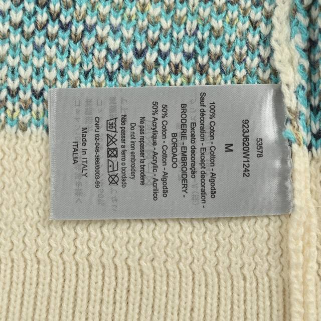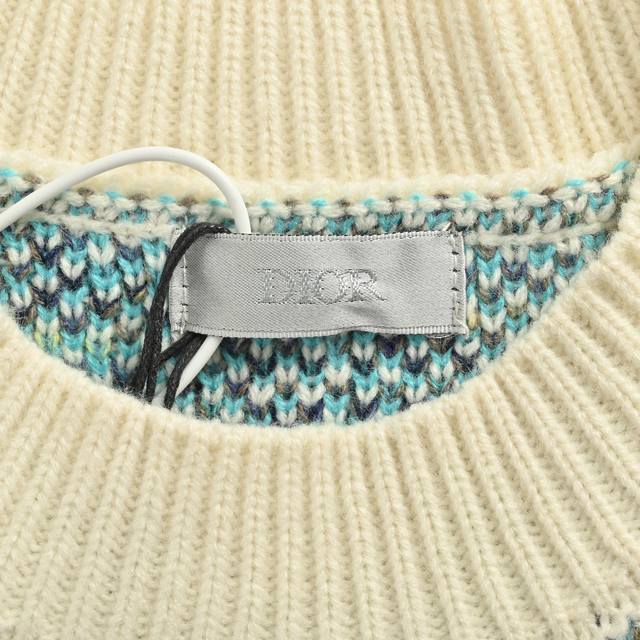 Dior Classic Monogram Jacquard Crew Neck Sweater. Features custom-dyed beige, blue, brown, and yellow yarns. Imported 7-needle jacquard yarn interprets the classic Oblique jacquard print. Ribbed neckline, cuffs, and hem. Original label, wash tag, and brand moisture-proof paper packaging. Color: Beige. Size: S-XL.