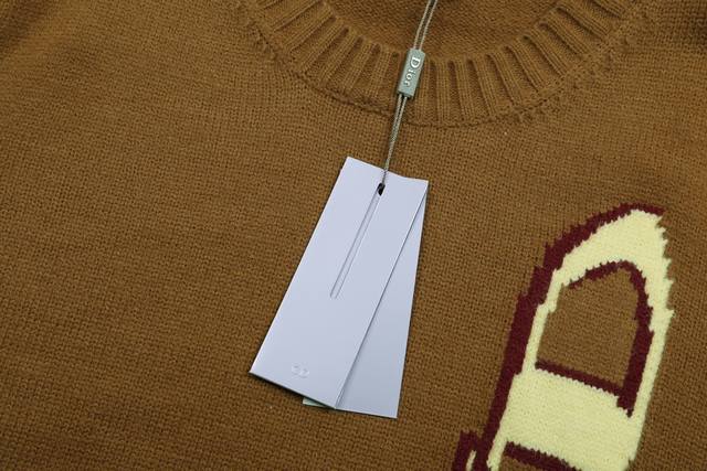 Dior Colorful Letter Jacquard Knit Sweater. The material is a wool-cashmere blend. 1. Craftsmanship Details: Knitted using imported 12-gauge jacquard equipment, the colorful letter pattern is precisely aligned, with clear texture and no skipped stitches or scraggly patterns; some styles feature a "brushed" finish, making the letter area feel more fluffy. 2. Accessories and Quality Control: Ribbed neckline, cuffs, and hem are custom-knitted, ensuring strong elasticity and shape stability; accessories such as hangtags and washing labels are brand-specific, and the garment undergoes a special washing softening treatment to ensure a soft feel while preventing sagging and deformation after washing. Sizes: S, M, L, XL, XL