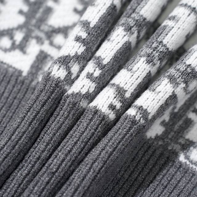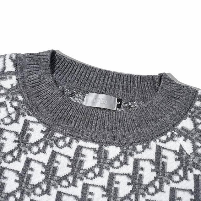 Dior Colorful Letter Jacquard Knit Sweater. The material is a wool-cashmere blend. 1. Craftsmanship Details: Knitted using imported 12-gauge jacquard equipment, the colorful letter pattern is precisely aligned, with clear texture and no skipped stitches or scraggly patterns; some styles feature a "brushed" finish, making the letter area feel more fluffy. 2. Accessories and Quality Control: Ribbed neckline, cuffs, and hem are custom-knitted, ensuring strong elasticity and shape stability; accessories such as hangtags and washing labels are brand-specific, and the garment undergoes a special washing softening treatment to ensure a soft feel while preventing sagging and deformation after washing. Sizes: S, M, L, XL, XL