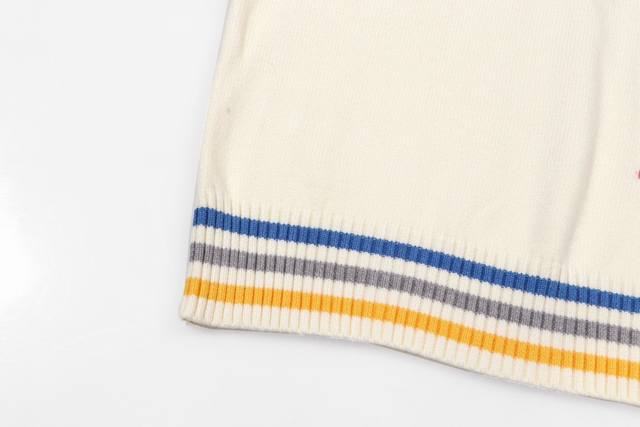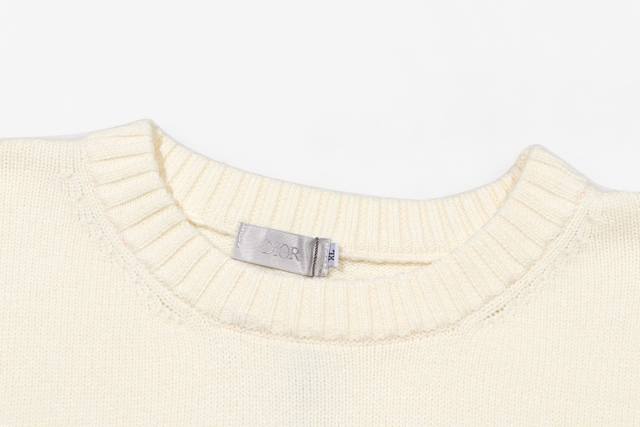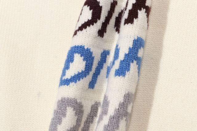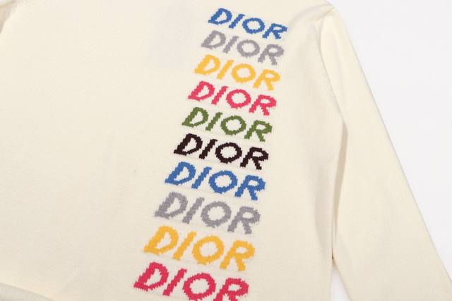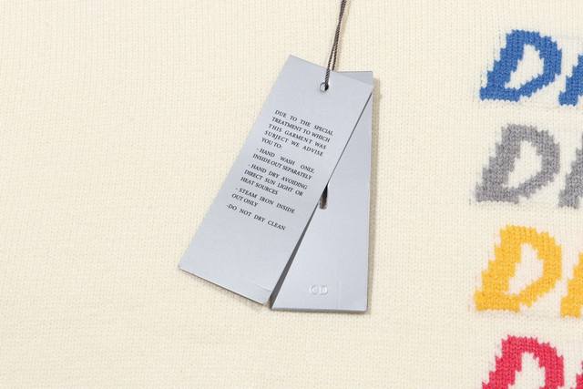 Dior Colorful Letter Jacquard Knit Sweater. The material is a wool-cashmere blend. 1. Craftsmanship Details: Knitted using imported 12-gauge jacquard equipment, the colorful letter pattern is precisely aligned, with clear texture and no skipped stitches or scraggly patterns; some styles feature a "brushed" finish, making the letter area feel more fluffy. 2. Accessories and Quality Control: Ribbed neckline, cuffs, and hem are custom-knitted, ensuring strong elasticity and shape stability; accessories such as hangtags and washing labels are brand-specific, and the garment undergoes a special washing softening treatment to ensure a soft feel while preventing sagging and deformation after washing. Sizes: S , M, L, XL, XL