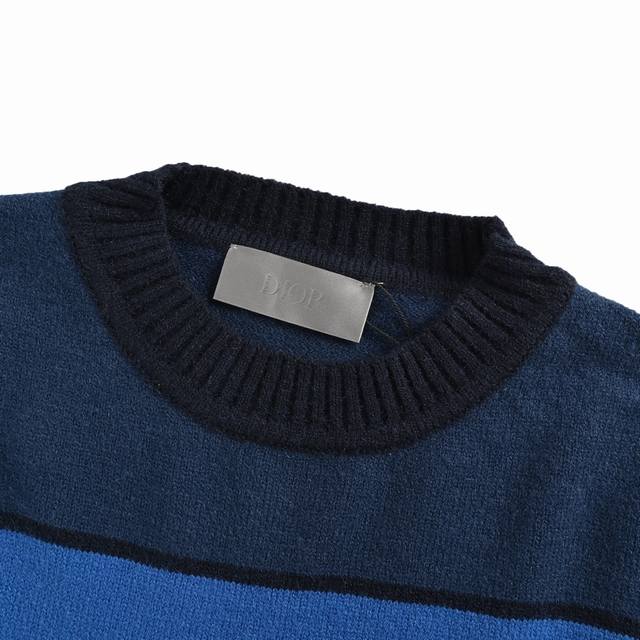 Dior Diamond Blue Gradient Stripe Patch Crew Neck Sweater
