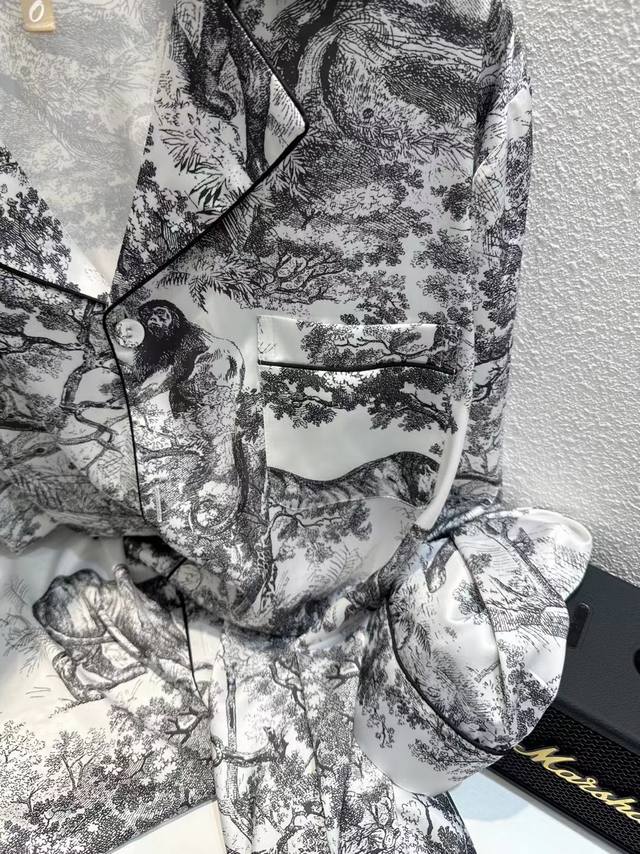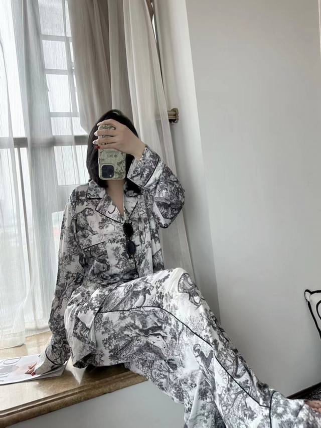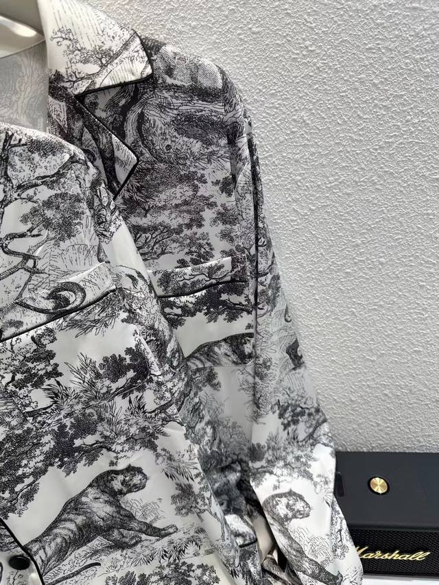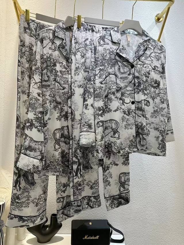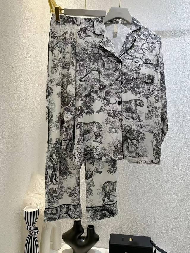 Dior Dior couple's pajamas for men and women, couple's home clothes, original quality two-piece set, long sleeves and trousers, same home clothes as the official website, classic Jouy Zoo print, imported silk segments, soft and breathable fabric, inner edging, super high value wardrobe must-have MLXl.Xxl