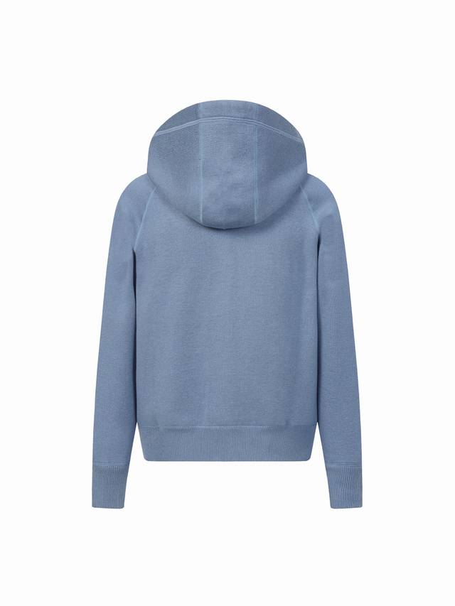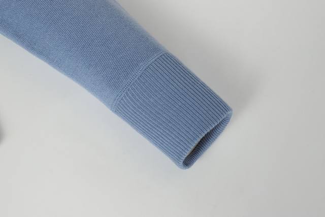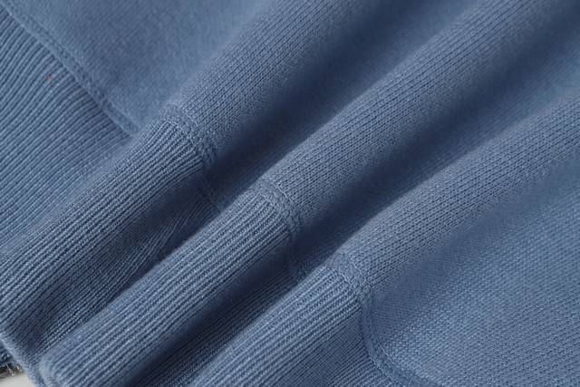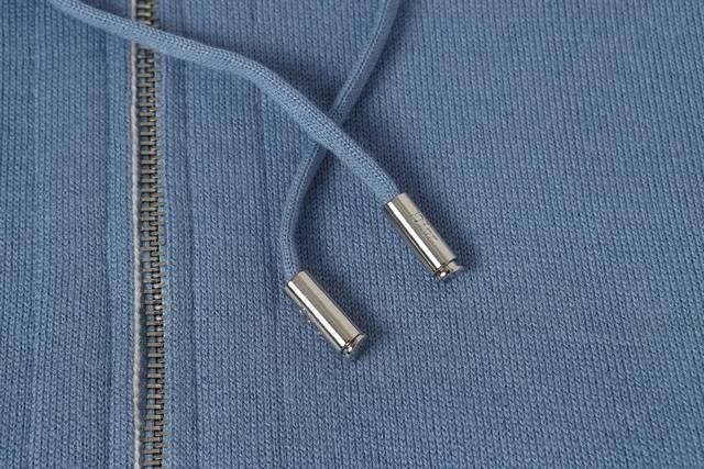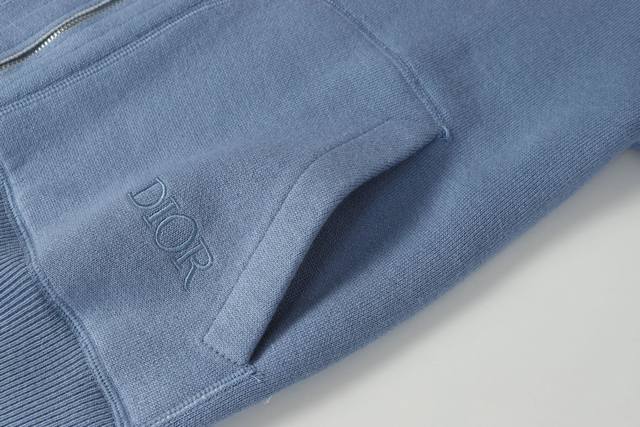 Dior Double-Sided Jacquard Cashmere Knit Hooded Hoodie. Originally purchased for 22,337 and developed from this piece. Made from a cashmere blend knit fabric, it is soft and comfortable. It features a zip closure at the front and delicate ribbed trim at the cuffs and hem. Reversible design, unlined for lightweight comfort, and a fitted silhouette for an elegant look. Exquisite craftsmanship throughout, the double-sided knit allows for reversible wear, and the ribbed trim enhances the three-dimensional effect. Dry cleaning is recommended to maintain the delicate texture of the cashmere fabric. This piece combines casual and fashionable styles, easily matching various outfits and showcasing the brand's exquisite craftsmanship and classic aesthetics. Color: Blue. Sizes: S, M, L.
