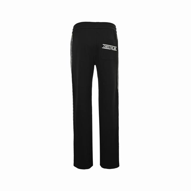 ) These track pants are a staple in sportswear and a versatile autumn/winter street style essential. The unisex basic slim fit offers a clean, sharp look and a sophisticated style. Made from custom-supplied terry knit fabric, the overall design is thick and warm, while remaining soft, comfortable, and breathable. The relaxed fit and jogger cuffs add a sporty touch. The back features a woven Dior label, and the elastic waistband and drawstring, along with metal hardware engraved with the Di logo, allow for easy pairing with various jackets and coats for a stylish look. (