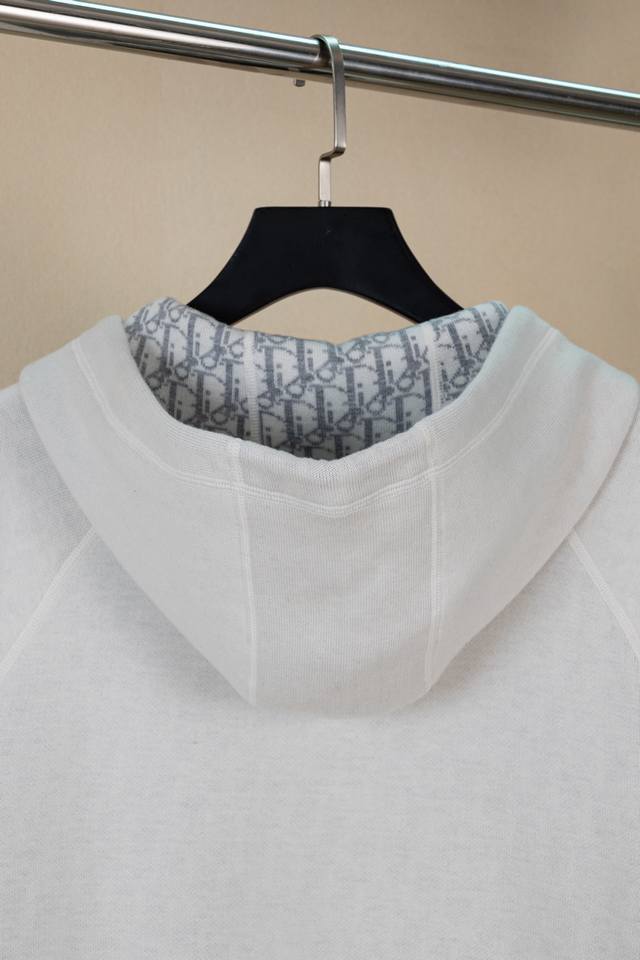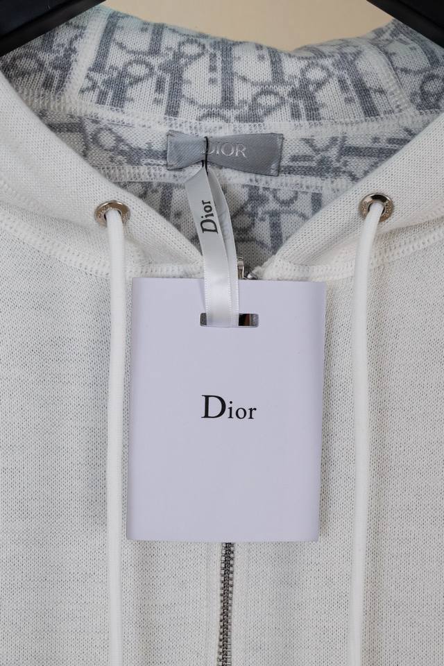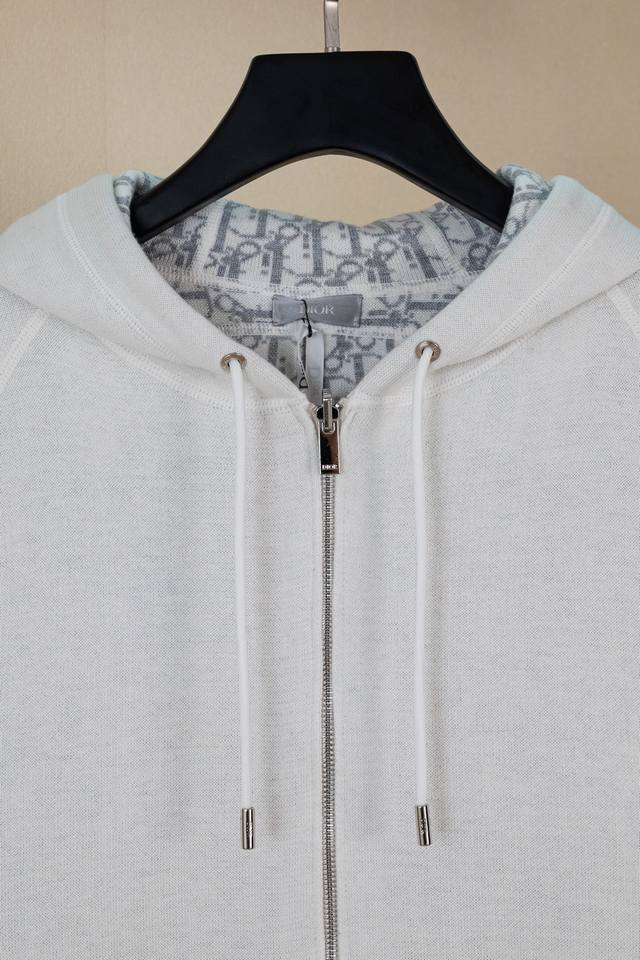 Dior Essentials Cotton Blend Knit Loose Zip-Up Hooded Jacket for Men, Navy Blue DDD This hooded track jacket is crafted from a navy blue cotton blend knit fabric, infusing classic haute couture style into a basic piece. It features a hood, zip-up closure, and raglan sleeves, with Dior embroidery on the front and an all-over Oblique print on the inside. Pair it with matching track pants for a sophisticated look. Ddd All-over Oblique print on the inside Ddd Dior logo embroidery on the front Ddd Drawstring hood with Dior logo-engraved metal hardware Ddd Front patch pocket Ddd Ribbed hem and cuffs Ddd Made in Italy DDD