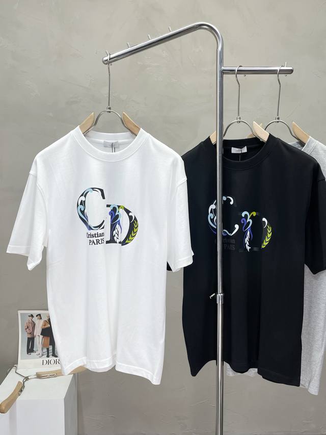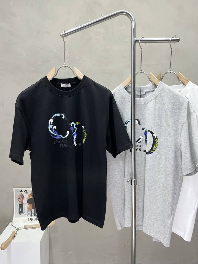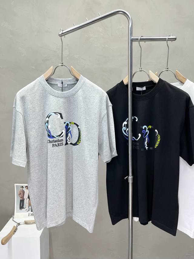 Dior exclusive new original men's casual short-sleeved high-end customization high-end version fashionable and versatile popular imported fabrics feel super soft and delicate to wear skin-friendly and comfortable high-end boutique OEM P fine workmanship upper body is very good men's must-have single item three labels complete size S-3Xl