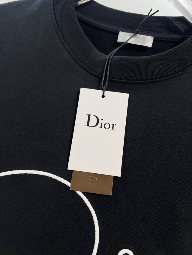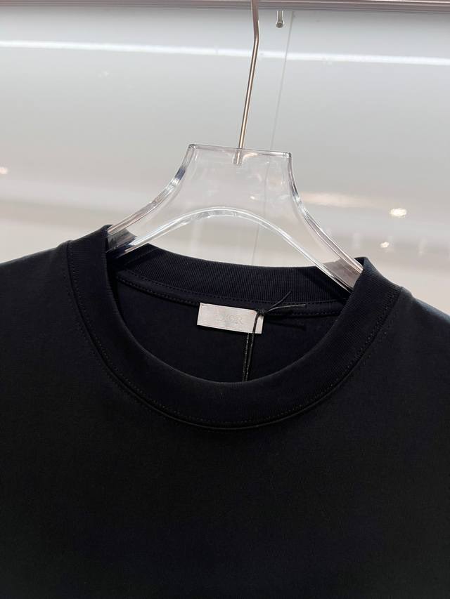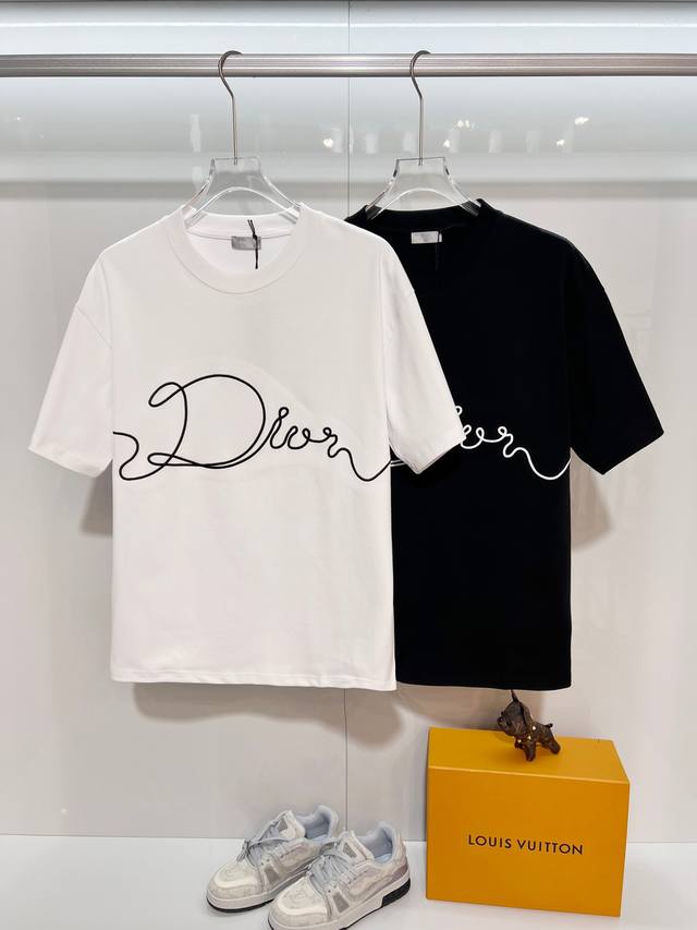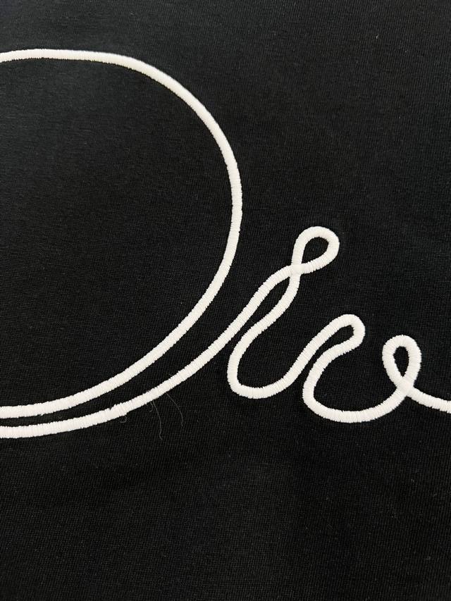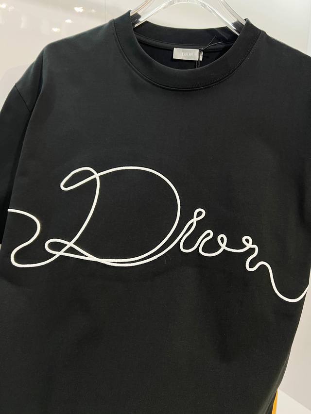 Dior High-Quality 320g Crew Neck Short Sleeve T-Shirt, featuring the brand's classic signature embroidered logo. Officially synchronized with the 2025 SS collection, this high-quality, fashionable, versatile, and trendy T-shirt is made with original fabric and tags. Colors: Black, White. Sizes: Xs, S, M, L.
