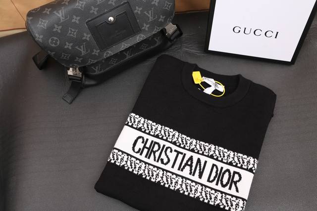 Dior High-Quality Classic Jacquard Knit Sweater, Couple's Casual Top. Dior Classic Series. Exquisite craftsmanship, silky smooth fabric, super breathable, comfortable feel, high-grade soft and supple fine yarn knit elastic fabric, lightweight and breathable with no sense of restriction. Very youthful and energetic, suitable for both men and women, perfectly matching the fashion aesthetics of today's young people. Incredibly beautiful and stylish! A must-have for couples this autumn/winter! All tags included, unisex style. Model: D8933. Color: Black. Sizes: S, M, L, XL.
