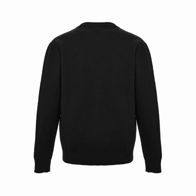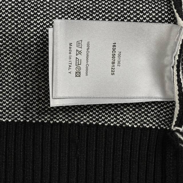 A classic Dior piece is back! This treasure sweater is a must-have for this fall/winter season, and it's available now! The sweater features a monogrammed pocket patch Ogo design, highlighting the brand's fashionable charm. Made from premium cotton yarn, this timeless piece utilizes a multi-layered knitting technique to create a unique texture. The evenly textured, color-blocked letter jacquard adds a touch of sophistication and luxury. The sweater is soft and comfortable to the touch, perfect for wearing alone or layering. The ribbed hem and sleeves feature blue trim that complements the overall color scheme.