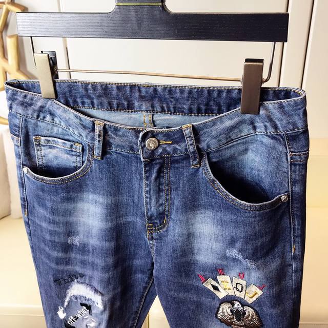 Dior Jeans, top-quality imported original, heavy-duty craftsmanship, original hardware and accessories. Heavy embroidery. Made with custom-made denim fabric from the boutique, perfectly matching the boutique style. Welcome to try them on at the boutique before purchasing. Good quality stands up to comparison. Sizes: 28-36 DDD