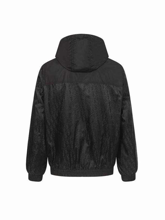 Dior logo all-over print hooded jacket. Rarely available through trade channels, limited overseas release. A quintessential outdoor jacket, the subtle logo print throughout highlights brand recognition. This jacket is both warm and lightweight. The latest boutique-style design, a super-authentic fit that instantly transforms you into a stylish man. The simple yet fashionable three-dimensional cut and unique craftsmanship result in an excellent fit, exuding confidence. Suitable for everyday casual wear and outdoor activities, it's also a great choice for travel, offering a relaxed yet sophisticated look. Color: Black. Size: S, M, L, XL.