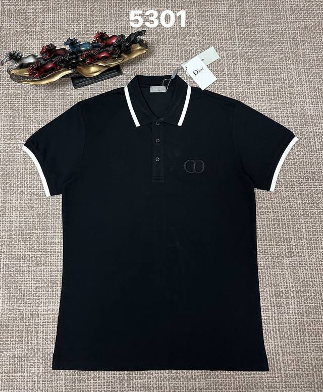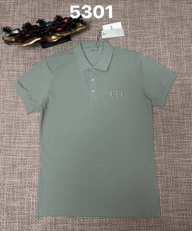 Dior men's open-chest style with a lapel collar, 5301, pure cotton fabric, embroidered details, available in black, white, and green, sizes M, L, XL, XL, and XXL.