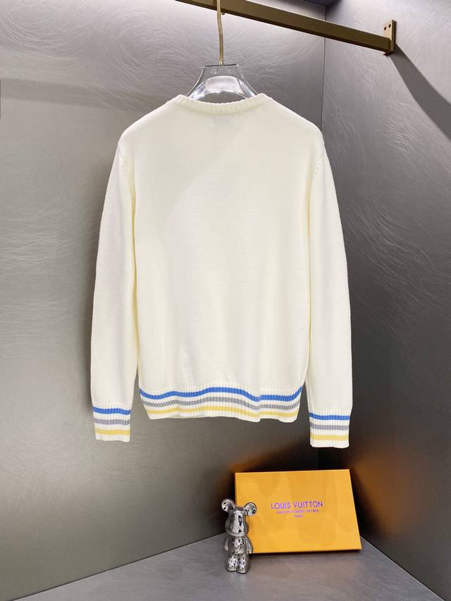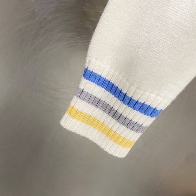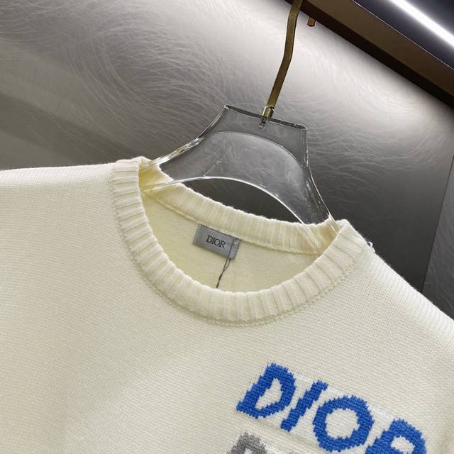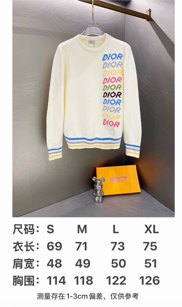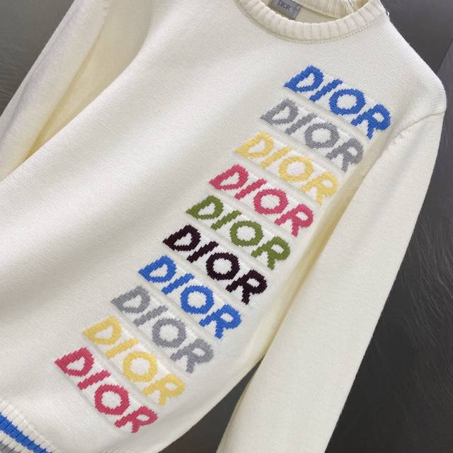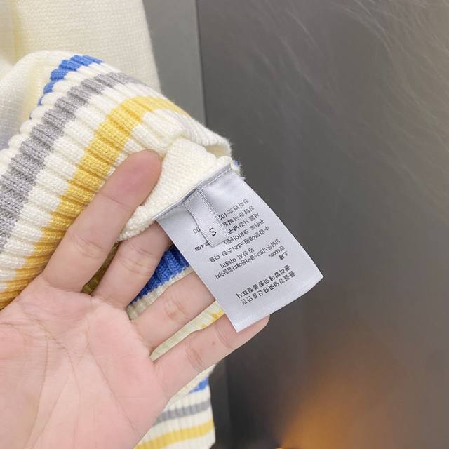 / Dior Multicolor Logo Jacquard Striped Crew Neck Sweater ( ) Color: Apricot ( ) S