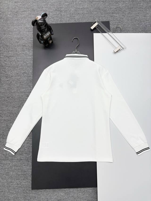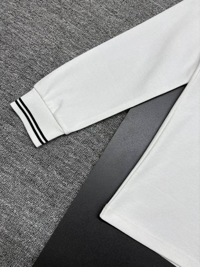 Dior New Embroidered Long-Sleeve Polo Shirt. Made with 250g pure cotton pique fabric, custom-dyed in the same vat, it feels incredibly comfortable and smooth. The cut is crisp and stylish. Produced by a top-tier brand's OEM factory, featuring imported Behringer embroidery machines for rich and textured embroidery. The ribbed cuffs and collar are made with imported yarn, ensuring long-lasting shape retention. A fashionable and unique autumn/winter style, super versatile and attractive. Suitable for both men and women, a must-have. Colors: Black, White. Sizes: M-3XL.