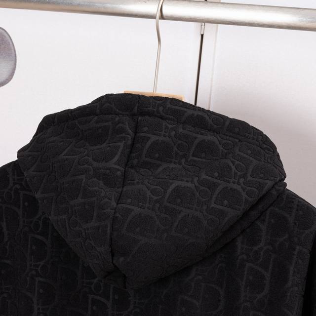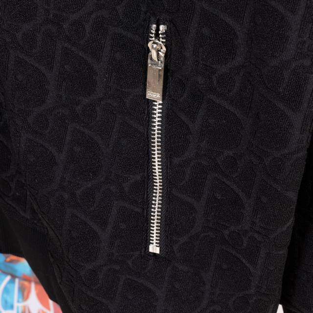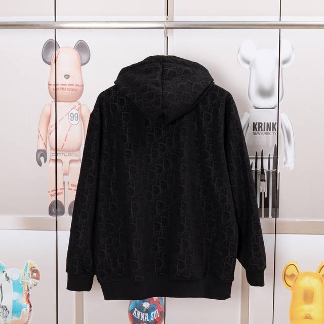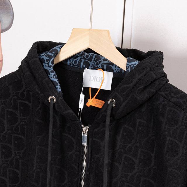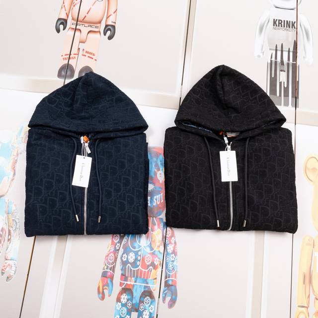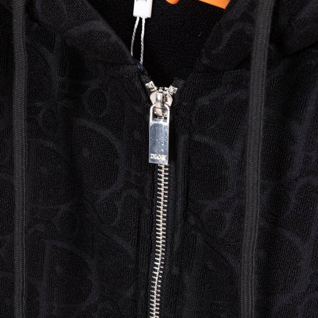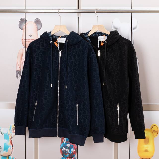 Dior New Fabric Zipper Jacket. High-quality fabric with Oreo fleece jacquard weave. Custom-made ribs. Original mold zipper. Comfortable and soft fabric, replicating the trendy look of special processes. Custom-dyed, complete with all three labels. Not your average market version. Quality guaranteed. Unisex style. Colors: Black, Navy Blue. Sizes: S, M, L, XL. Style Number: A3306.