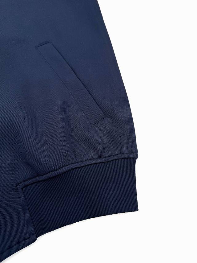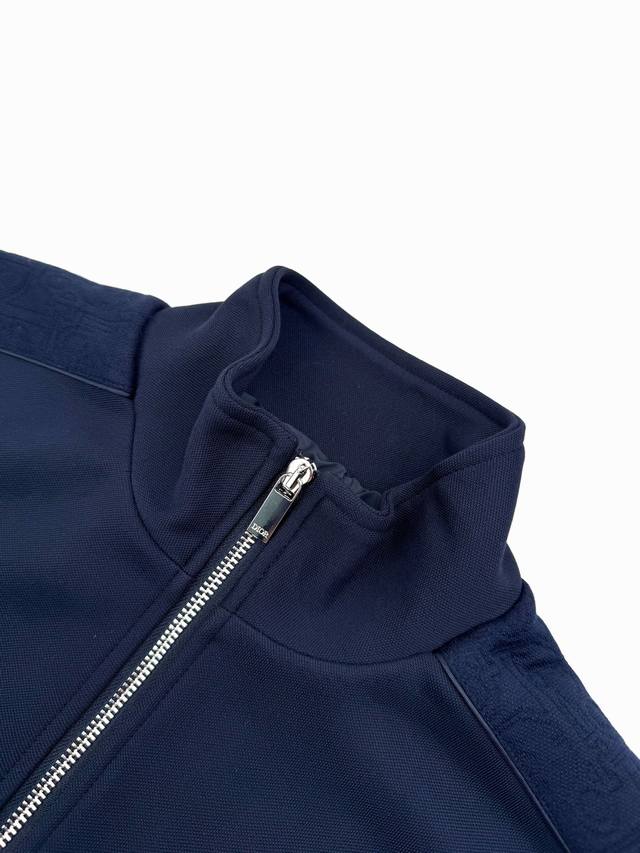 Dior Oblique Zipper Jacket with Patchwork Made with custom Twilight Cloud knit fabric, soft and comfortable against the skin, this jacket reconstructs masculine power aesthetics in navy blue, exuding a mysterious and elegant aura. The sleeves feature Oblique patchwork as a visual anchor, reshaping the arm lines for a slimming and powerful look, allowing the aura to flow with body language. Metallic interlocking aesthetics reconstruct sporty luxury, achieving a balance between style and warmth. A perfect suit for any occasion. Craftsmanship 1: Jacquard Fabric Technique. By weaving Dior Oblique jacquard patterns onto the fabric surface, the interlacing of warp and weft threads is precisely controlled, controlling the yarn density and tension for a more three-dimensional effect. Craftsmanship 2: Computer-Guided Laser Cutting. A high-power-density laser beam is generated and focused into tiny points by a focusing lens group, achieving precise cutting of the cut pieces. Craftsmanship 3: All fabrics are treated with a hand-washing process for a better feel and texture, making them less prone to deformation, shrinkage, and fading, maintaining their long-lasting beauty. Accessories: Custom 1:1 Dior Zipper; Custom 1:1 Dior Snap Buttons. Custom 1:1 Dior logo print. Fit: Relaxed. Sizes: S, M, L, XL. Style number: Bb738.