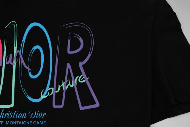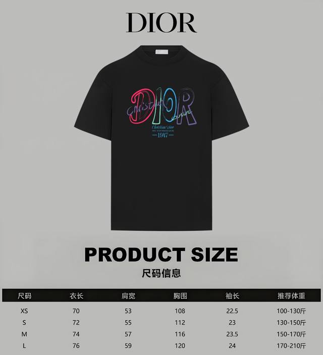 Dior Official Website Limited Edition Rainbow Graffiti Logo Letter Print Double Yarn Pure Cotton Short-Sleeve T-Shirt - 280G Double Yarn Pure Cotton Top-Grade Fabric, Soft to the Touch, 100% Pure Cotton, Exclusive Shipment, Custom Dyed, Sulfurized Black, Dust-Free Processed Fabric - Fabric: 280G Double Yarn Pure Cotton Short-Sleeve T-Shirt, Matching 300G Pure Cotton Ribbed Knit - Exquisitely Upgraded Logo Label, Inspired by 80s Retro - Original Fabric, Official Same Style - Colors: White, Black - Sizes: Xs, S, M, L - Purchased from the original and molded , with a full set of custom accessories; details determine success. - Accessories: 1:1 original accessories, complete with three labels, Os drop shoulder fit, unisex, official website quality - No gender distinction, unisex style -