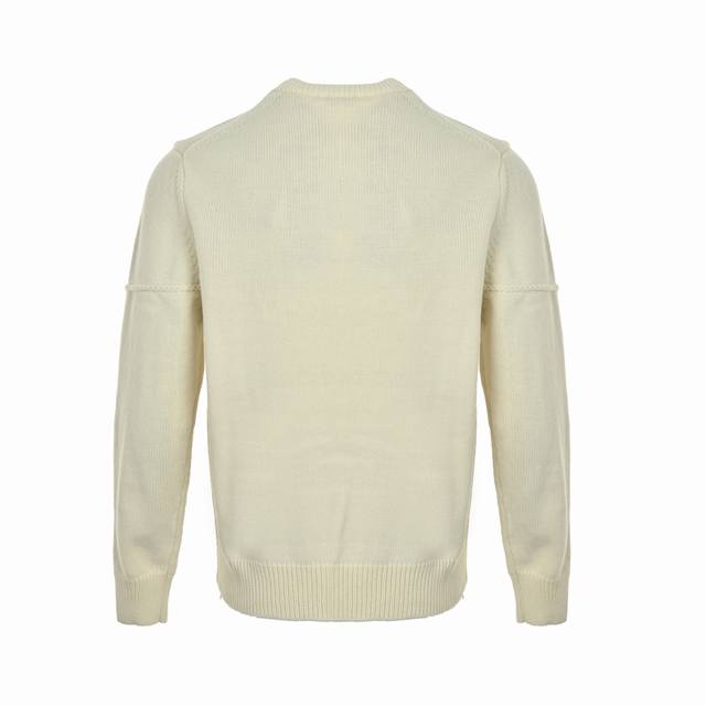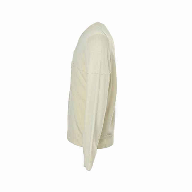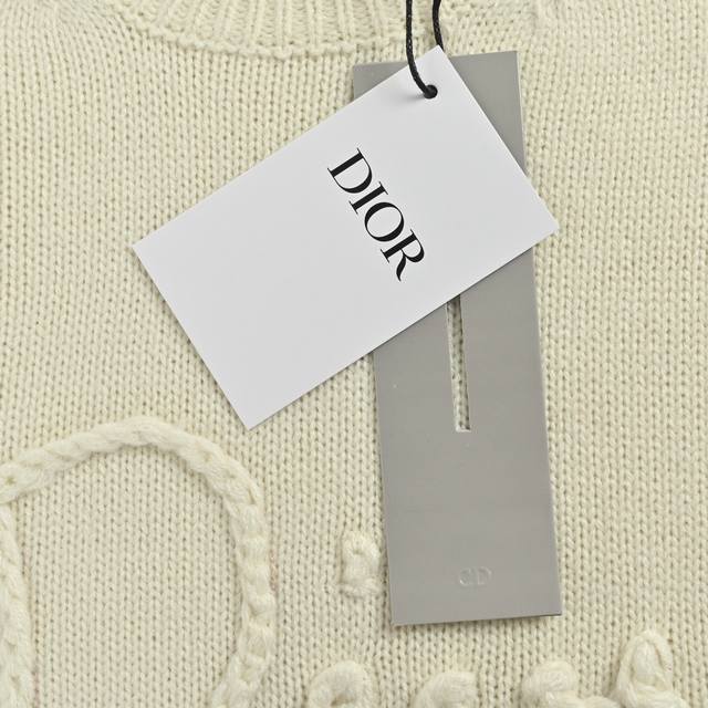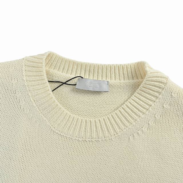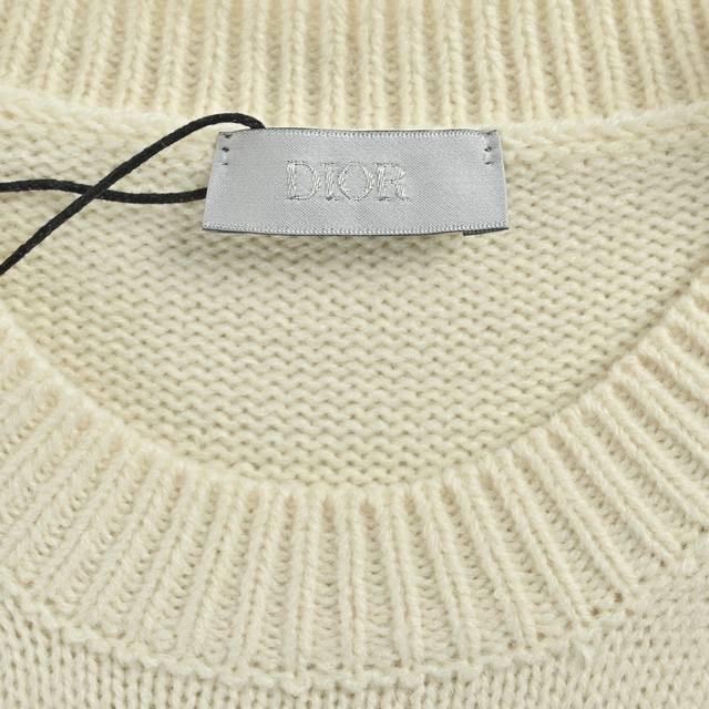 Dior Ribbon Logo Crew Neck Sweater (Ddd). Made from 50% wool and 50% cotton yarn. The chest logo is knitted on an imported 7-needle machine, custom-made to the original 1:1 dimensions. Finished garment process: washing - removing surface impurities from the wool - color fixing - shaping - adding hand feel. This knit sweater is a new addition to the Spring 2026 menswear collection, adorned with the Dior Ribbon logo, paying homage to the exquisite craftsmanship of the Dior ateliers. Carefully crafted from white sheep's wool plain knit fabric, featuring a ribbed crew neck, cuffs, and hem. An elegant fit that pairs well with jeans for a sophisticated, casual look. (Ddd Size: SL DDD)