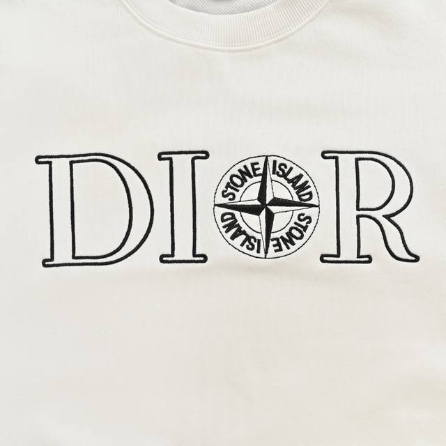 Dior & Stone Island Collaboration Embroidered Logo Crew Neck Sweatshirt. Made of 420g pure cotton fabric with a terry cloth sole, custom 32-count 2*2 ribbing. Double-washed for a comfortable, skin-friendly feel. Custom-dyed fabric with high weave density, excellent drape, and resistance to deformation. The thick weave and tight spinning process ensure breathability. High color saturation. Imported direct-injection technology. Loose fit, flattering and slimming, suitable for all body types. Super versatile and stylish. Unisex sweatshirt. Size: S-XL. Colors: Black, White.