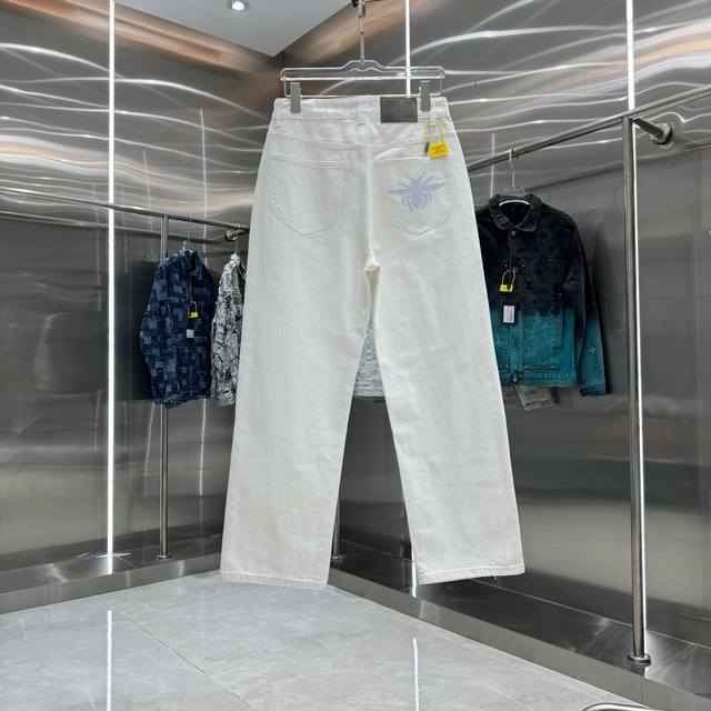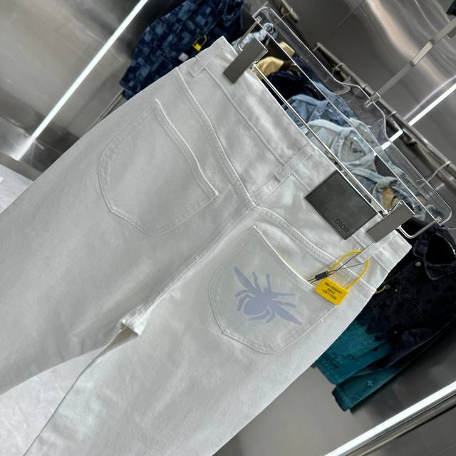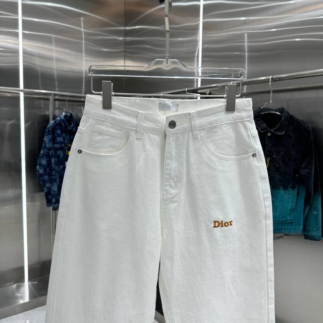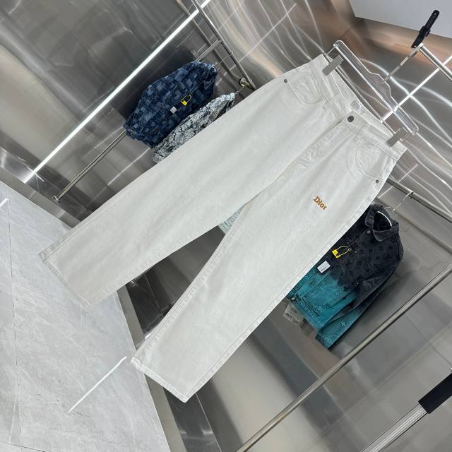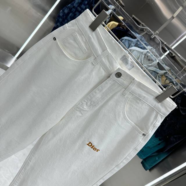 Dior straight-leg jeans with letter print on the back pocket. Available in different washes, these jeans are flattering for both slim and thick legs. The straight, slim fit is very flattering and the perfect length is timeless. They're easy to style and a wardrobe essential for various looks! The fabric is structured yet soft against the skin, and the washing process is top-notch. A must-have! Sizes: 28, 30, 32, 34, 36. Color: White.