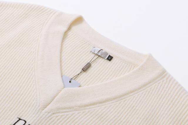 Dior V-neck Embroidered Logo Letter Knit Wool Sweater (Ddd) Colors: White, Gray (Ddd) Sizes: S, M, L, XL, XL (Ddd)