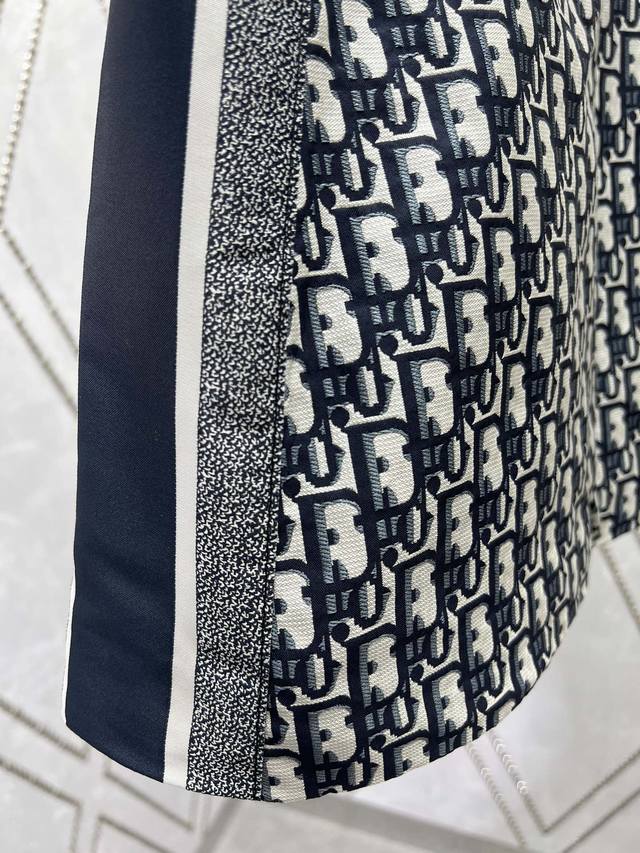 Dior25Ss The new zip-up mini skirt from the Dioralps limited edition collection combines the aesthetic of sportswear with the couture spirit of Dior. Crafted from quilted taffeta technical fabric with blue Oblique print, it has a flared cut, a front zipper design for a stylish look, zippered pockets and the Christian Dior logo on the side. Pair it with other Dioralps pieces for a sophisticated look.