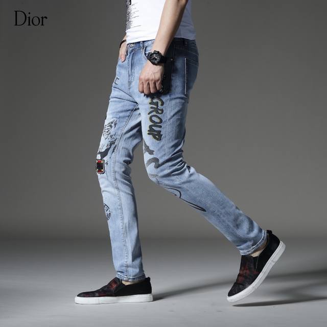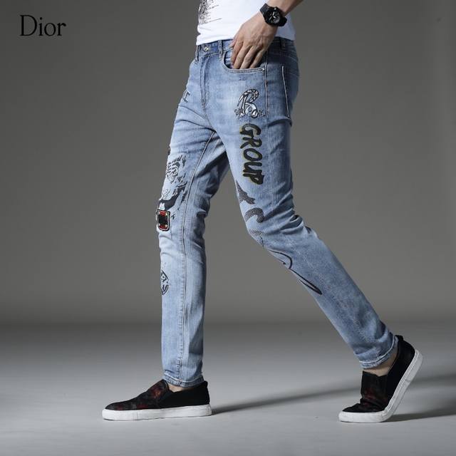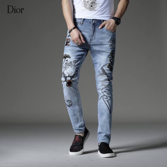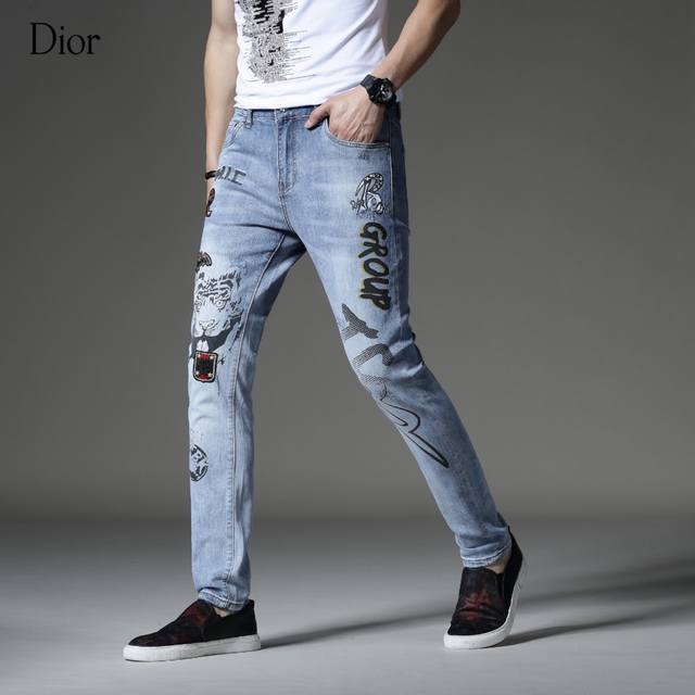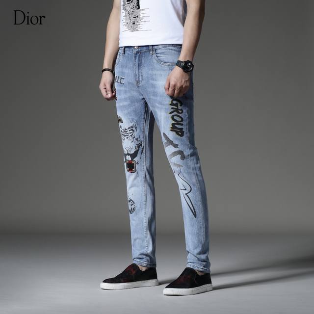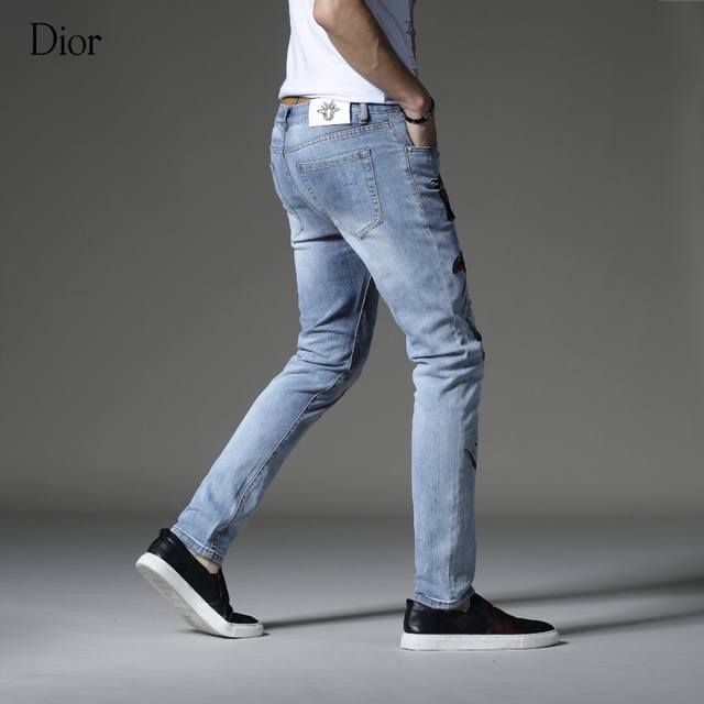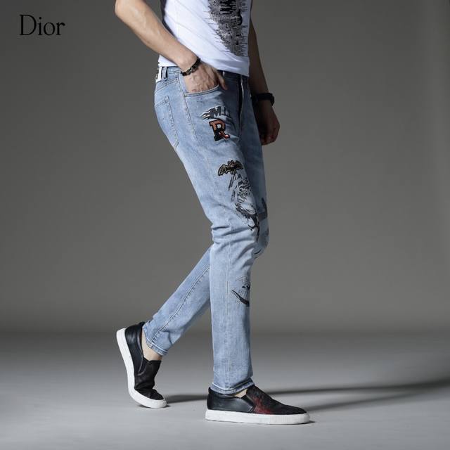 Dior's latest boutique style, first release! High-end fashion jeans that instantly transform you into an oppa! Simple and stylish three-dimensional tailoring, unique craftsmanship, original factory production; excellent fit, exuding confidence; every detail showcases perfect quality. The classic logo symbolizes the brand's highest quality. Owning these jeans is the beginning of another kind of fashion. Sizes 28-36, no size 35.