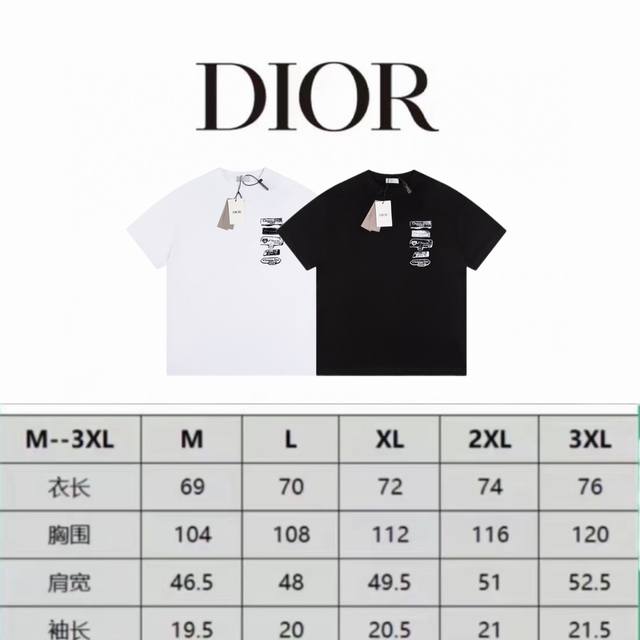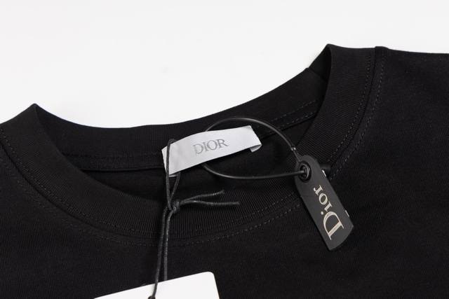 High Quality] Dior's new flocked specimen letter short-sleeved T-shirt is made of pure cotton double yarn fabric with a flocking process. It features a loose fit, all accessories, a soft and thick fabric, and all three labels are included. Unisex style. Sizes: M-3XL. Please provide your height and weight when ordering.