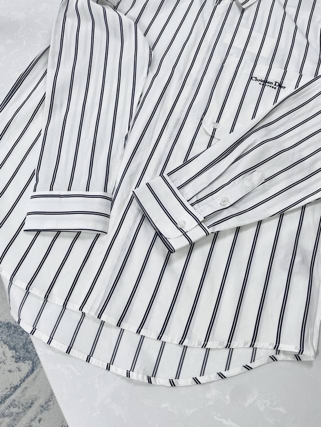 High-version Dior-Dior-25Ss New Striped Embroidered Long-Sleeve Shirt Ddd Size:Xs-L DDD