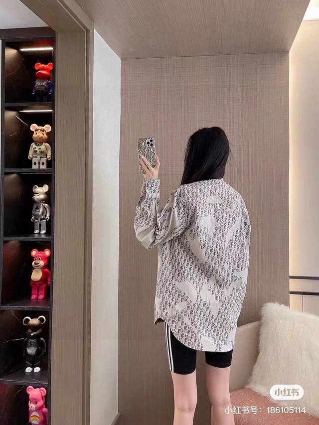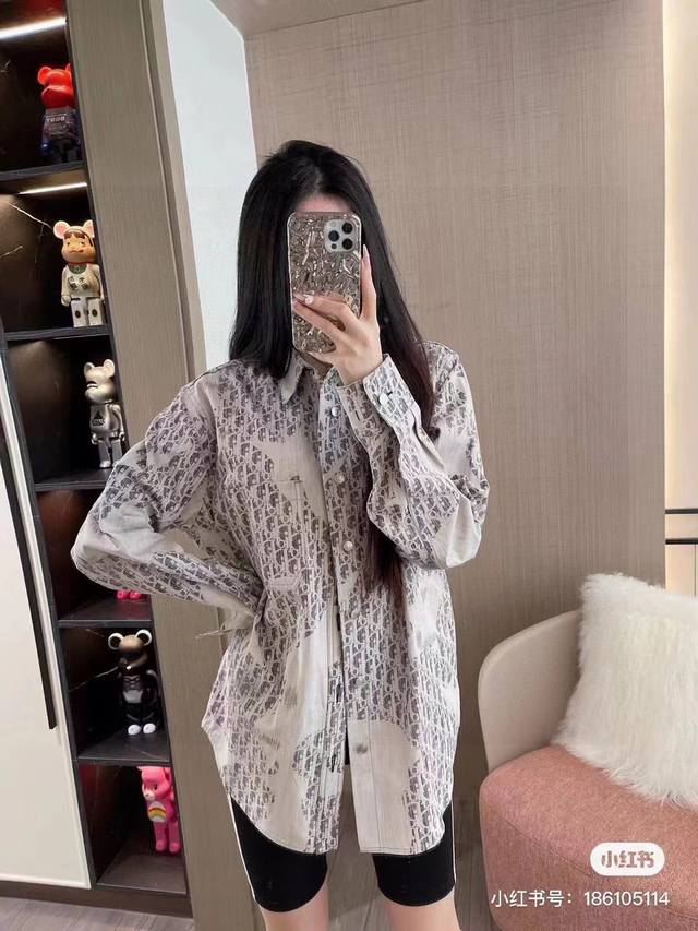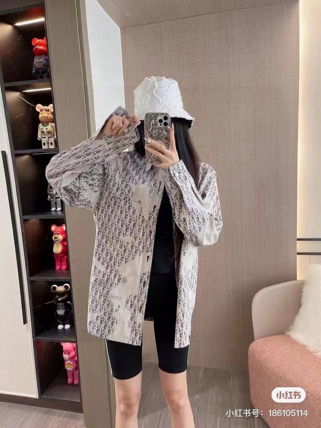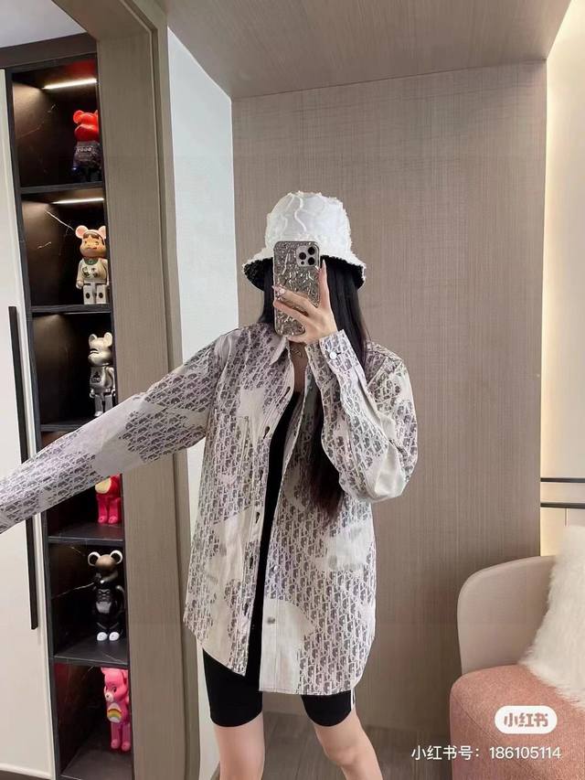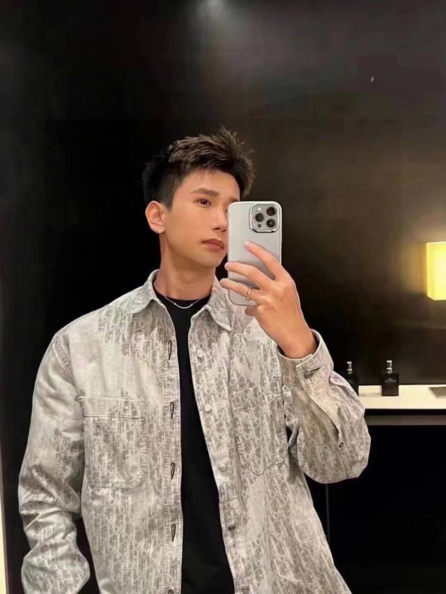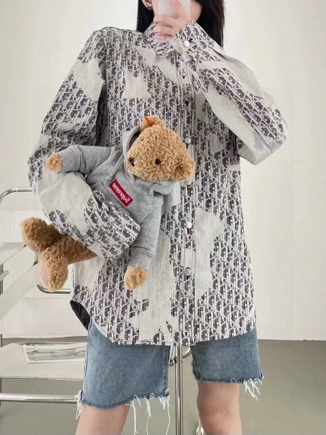Dior's autumn limited edition classic monogram jacquard all-over denim shirt, tie-dyed, and distressed bleached. This season's hottest fashion item from the brand,