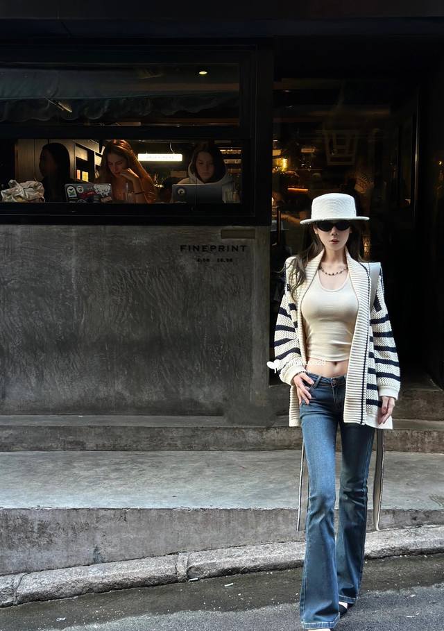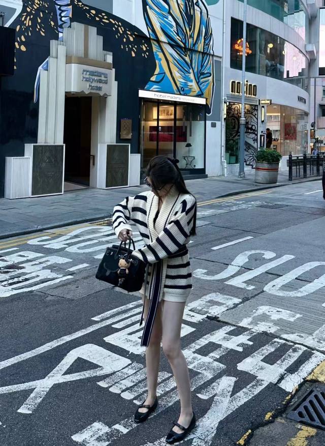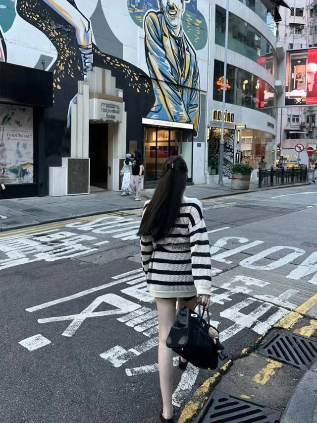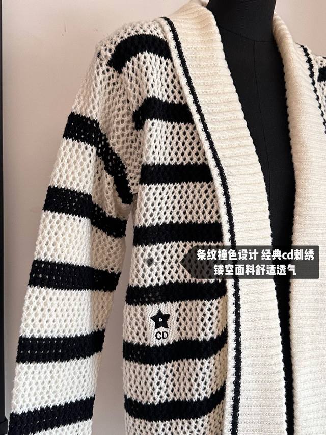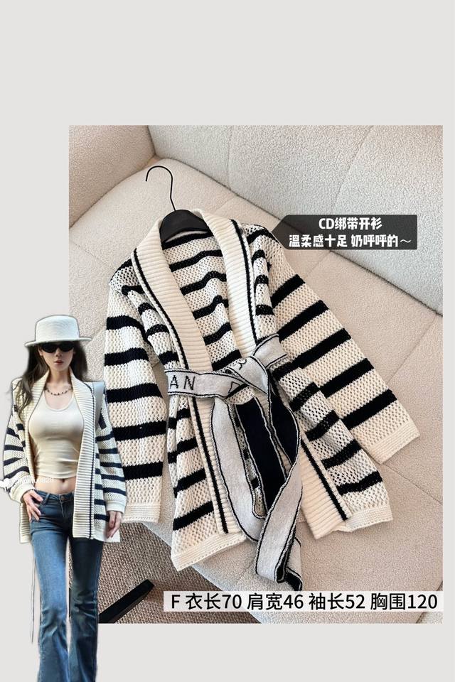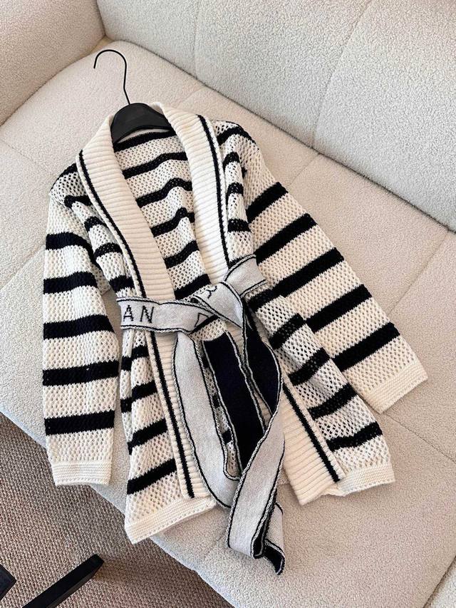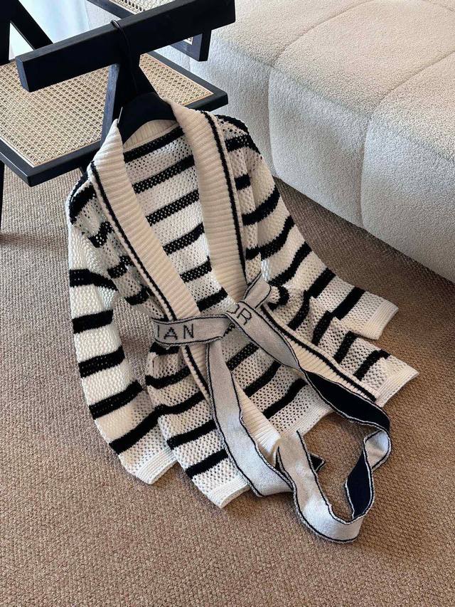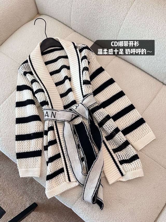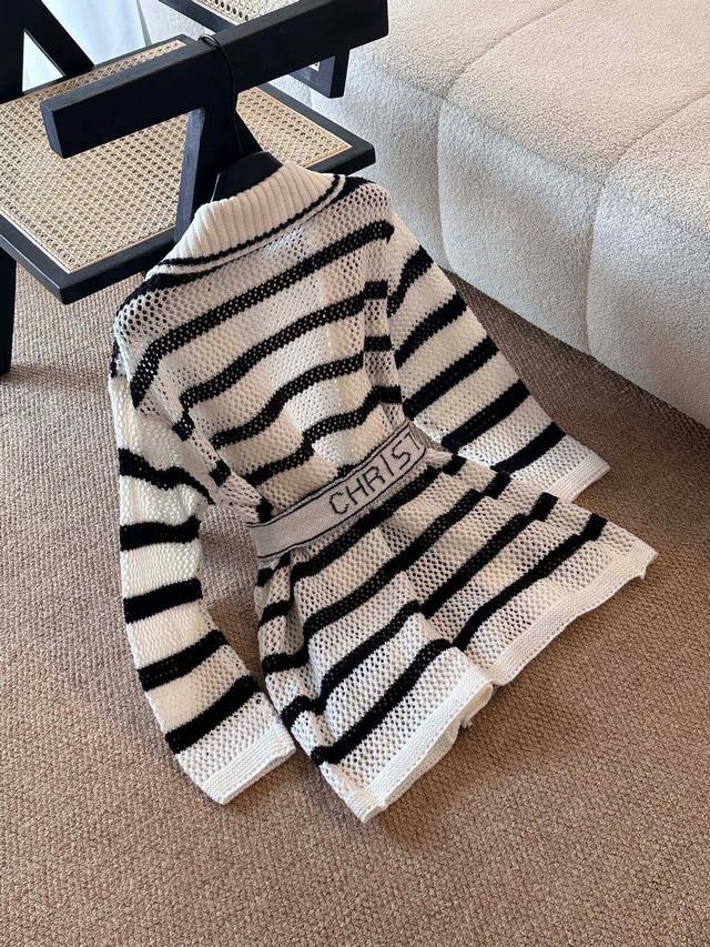 New Arrival! Dior Striped Hollow-Out Skirt with Tie-Up Knit Cardigan ~ Haute Couture Version, this one is really gentle and gives off a cute and sweet vibe! Color: As pictured Size: See last picture