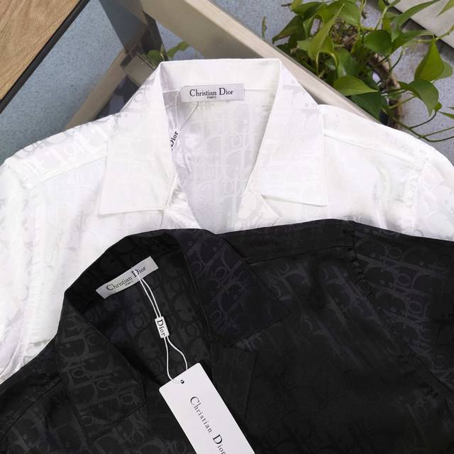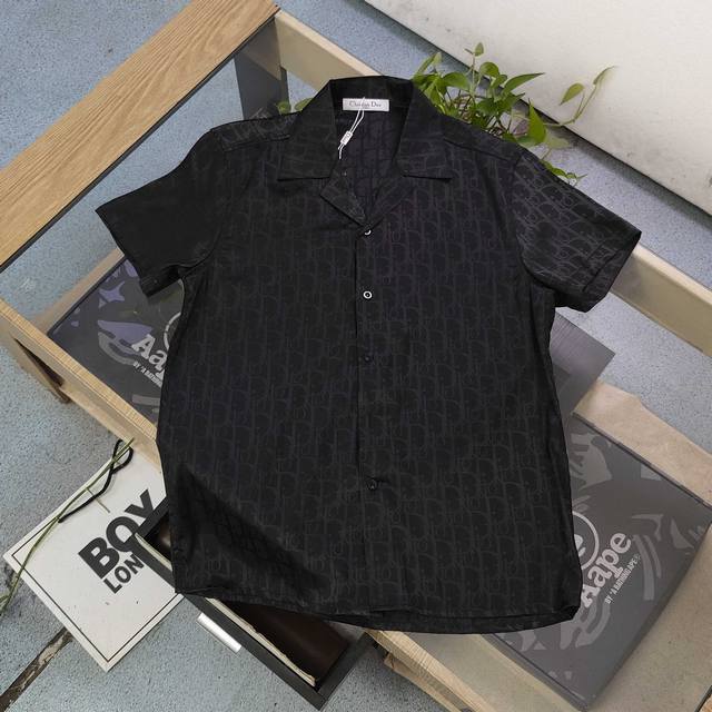 2025 new Dior classic full-print D letter Logo printed couple short-sleeved shirt, made of smooth fabric, more comfortable, positioning cutting, shirt grid, time-consuming and wasteful , the overall printing is three-dimensional and full, wearing trendy and fashionable, perfect for outerwear or inner wear, the same style for men and women!