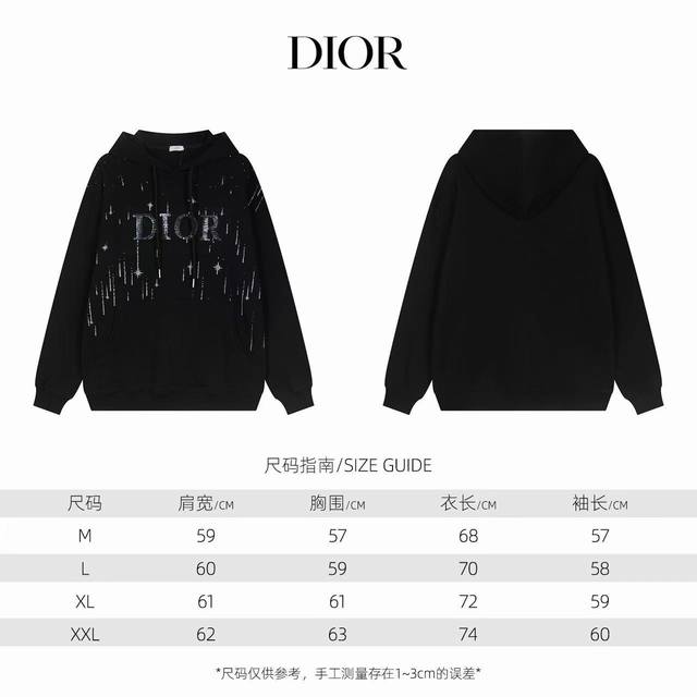 Price: Wholesale starting from one piece. Individual orders +10. Dior's popular classic embroidered logo hooded sweatshirt, unisex pullover sweatshirt, terry cloth sweatshirt. Details are replicated 1:1 from the original version. Made of 420g terry cloth fabric, high-quality printing process. Sell at your own risk without worrying about quality. Sizes: M, L, XL, XL. Color: Black. Style Number: W9803.