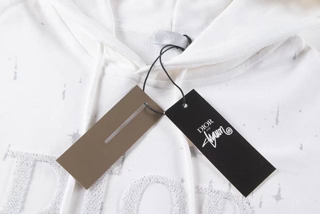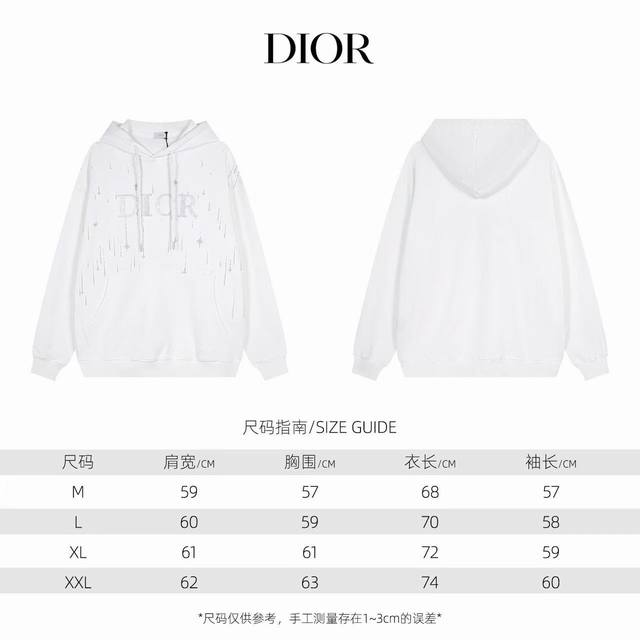 Price: Wholesale starting from one piece. Individual orders +10. Dior's popular classic embroidered logo hooded sweatshirt, unisex pullover sweatshirt, terry cloth sweatshirt. Details are replicated 1:1 from the original version. Made of 420g terry cloth fabric, high-quality printing process. Sell at your own pace without worrying about quality. Sizes: M, L, XL, XL. Color: White. Style Number: W9803.