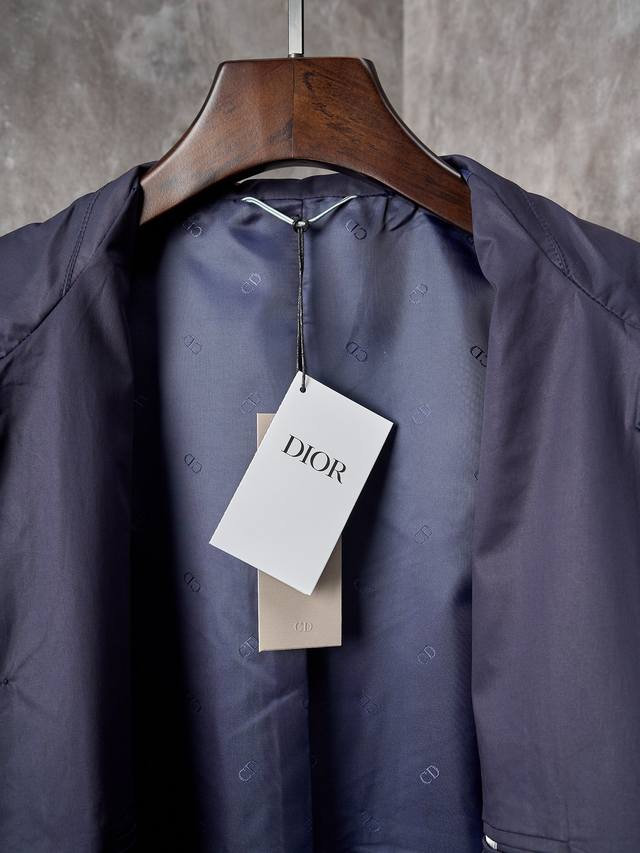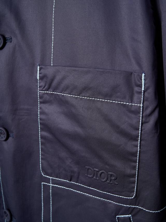 Real item hanging photo Dior navy blue pocket embossed work jacket DDD Ddd In stock SML XL DDD This work jacket is meticulously crafted from 82% cotton and 18% silk Ddd navy blue cotton blend canvas fabric DDD Paying homage to Dior's exquisite craftsmanship, it features side patch pockets and fabric-covered buttons. All buttons are hand-stitched and paired with the Dior embossed logo. The embossing is done using an imported embossing machine and features contrasting stitching. Shoulder padding enhances the overall structure of the garment. DDD