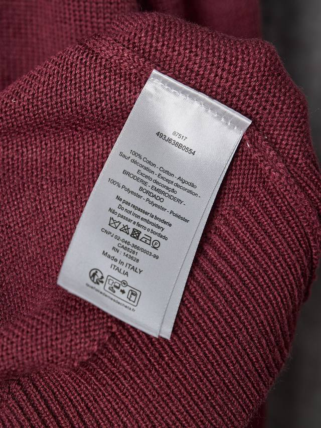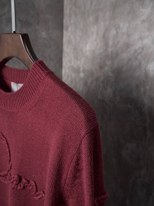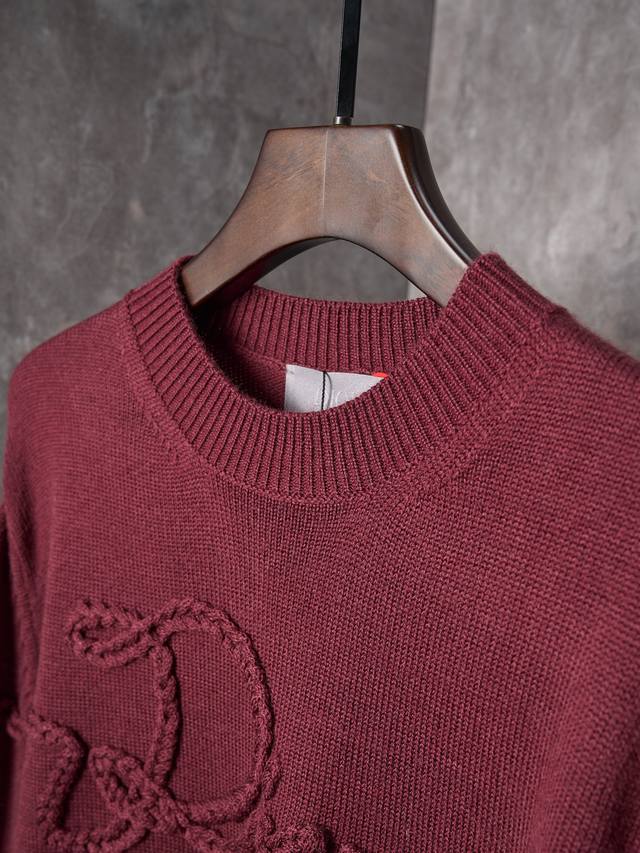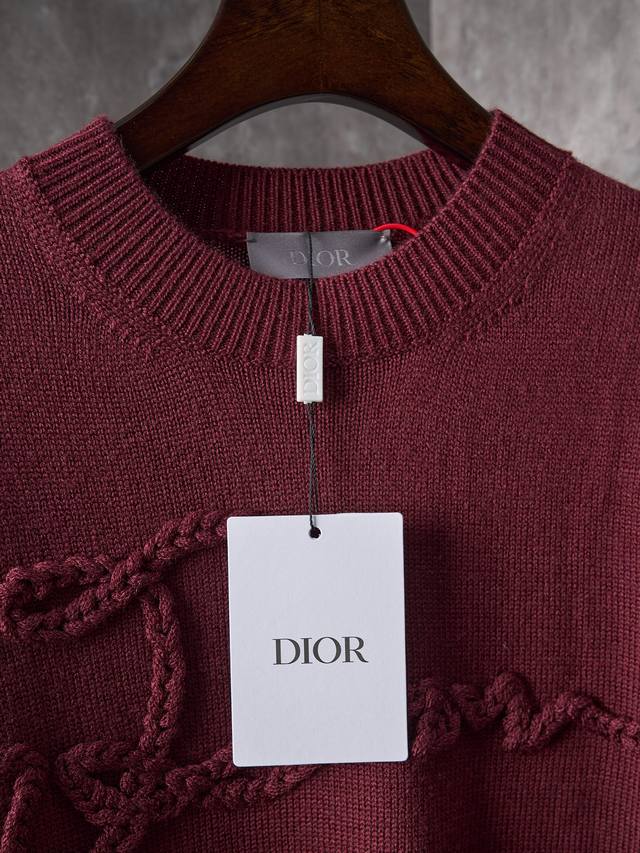 Real item hanging photo Dior Ribbon 3D rope knot letter knit sweater DDD Ddd In stock SML XL DDD Custom-woven cloud wool with a soft and comfortable feel against the skin. The deep burgundy base color is like a fine vintage wine, becoming more sophisticated with age. Inspired by the Dior Ribbon, the brand name is transformed into a 3D rope knot pattern, interpreting the timeless elegance of Dior. Like a ribbon wrapped around the fabric surface, it's a low-key declaration of luxury and the ultimate expression of elegance. The design transcends the garment itself, becoming an effortless aesthetic attitude, requiring no deliberate style. DDD The embossed twisting technique uses interlaced yarns to create an embossed texture. Elastic ribbons are embedded on one side of the fabric. During the stitching process, the ribbons remain on the back of the stitch, giving the fabric a three-dimensional feel. DDD Garment washing and softening deodorizing process uses professional washing equipment and specific detergents to deeply clean and deodorize the garment, improving its feel and appearance. Loose fit DDD