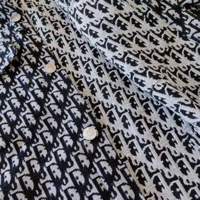 Real Shot Details + Size Chart Dior Classic Logo All-over Jacquard Shirt, Denim Couple Casual Jacket 1. Custom all-over knit jacquard silk fabric, the all-over jacquard uses a ten-thousand-needle embroidery technique to perfectly control every stitch. Unlike other versions on the market, the fabric uses a custom-dyeing process with a high-quality wash and tie-dye finish, complex workmanship, and is a very high-quality fabric! 2. Precise and high-quality jacquard craftsmanship makes the logo and fabric one. 3. After washing, it is soft and comfortable to wear, extremely delicate, with a firm, smooth, and soft feel, possessing the characteristic of being wrinkle-free, with an unbeatable feel. Perfect details. 4. Stylish and unique, the design is fashionable, simple, and elegant, a very versatile jacket! 5. Unisex, size 72 5. Color: As pictured 6. Size: S, M, L, XL