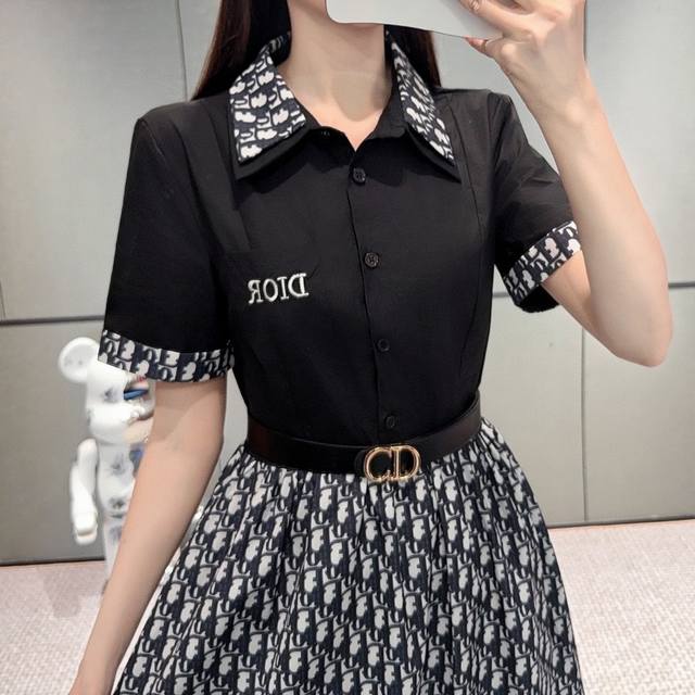 Special Price DDD Dio* 25Ss New Shirt Dress DDD Monogram Print Fabric, Color Block Design, Letter Embroidery Decoration, Large Skirt with CD Belt, Exquisite Workmanship, Refined and Stylish~ DDD Colors: Black, White DDD Sizes: S, M, L DDD S Size Recommendation: ~100 DDD M Size Recommendation: 100