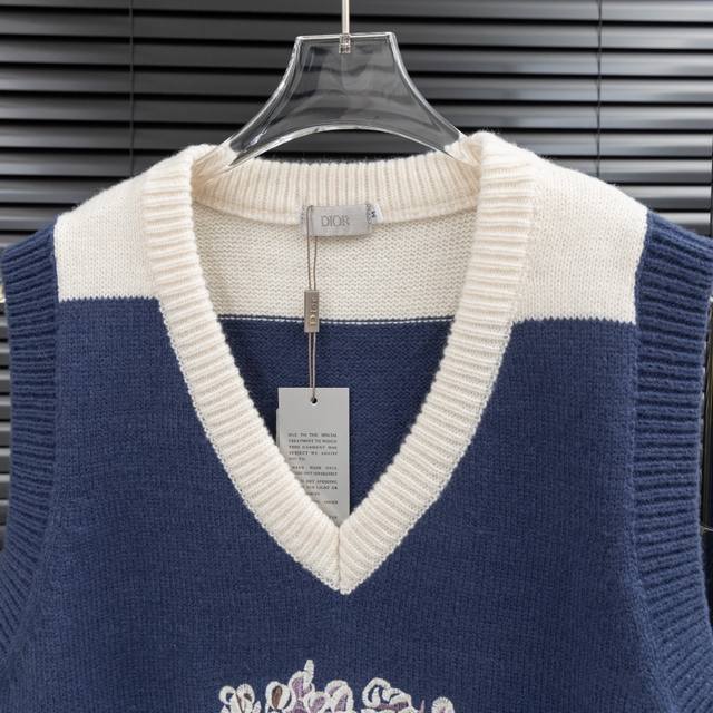 Style: Dior Embroidered Floral V-Neck Knitted Wool Vest Sizes: S-XL Fabric: Wool Blend Accessories: Full set of custom-made original accessories Unisex