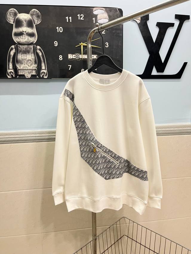 Style No. 256 Dior New Fabric-Dyed Pocket Sweatshirt. High-quality fabric with fabric -decorated zip-up pockets . The fabric is a composite of fleece and custom-made ribbed. The fabric is comfortable and soft, replicating the trendy look of a special process. Custom-dyed, with complete labels. Not your average market version; quality is absolutely guaranteed. Unisex style. Colors: Black, White. Sizes: S, M, L, XL.